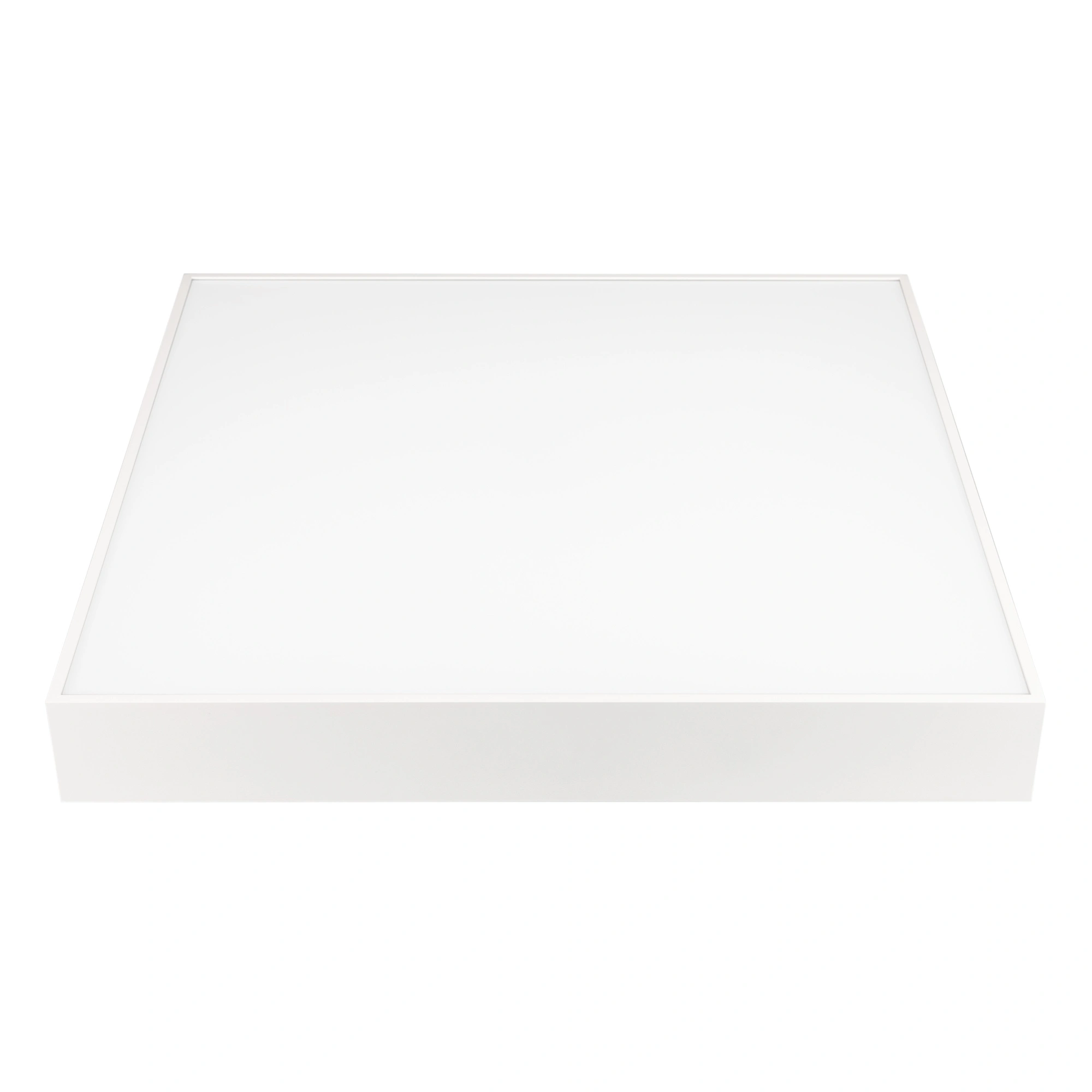 Интерьерный накладной светильник IM-QUADRO-EMERGENCY-3H-S500x500-54W Warm3000 (WH, 120 deg, 230V) мощностью 54 Вт с белым теплым цветом свечения (3000К), световым потоком 4100-4400 лм и высокой световой эффективностью 90 лм/Вт предназначен для создания яркого и качественного освещения в интерьере. Высокий индекс цветопередачи CRI>90 удовлетворяет требованиям большинства проектов, так как обеспечивает отличную передачу цветов. Угол освещения составляет 120°, что подходит для основного освещения помещений. Матовый экран светильника сделан из поликарбоната и обеспечивает равномерное освещение без видимости точек светодиодов. Размеры корпуса в форме квадрата и возможность монтажа накладным способом позволяют легко монтировать и совмещать модель с различными интерьерами. Корпус изготовлен из окрашенного алюминия белого цвета, что придает светильнику не только современный стиль, но и обеспечивает защиту от пыли на уровне IP40. Светильник предназначен для применения внутри помещений, где нет контакта с водой или другими жидкостями. Снабжен встроенным блоком аварийного питания, что дает возможность безопасно и быстро подключать его напрямую к сети 230В, а так же поддерживать работу в автономном режиме до 3ч. Пульсация менее 5% обеспечивает комфортное освещение без мерцания. Идеально подходит для освещения офисных, торговых, производственных помещений, а также мест общего пользования.
