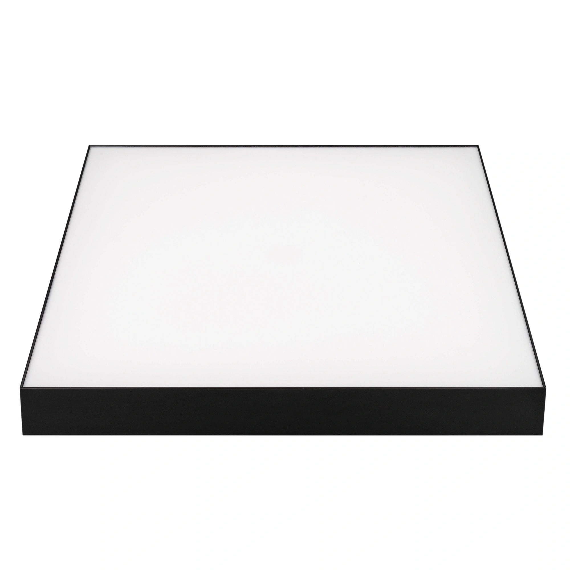 Интерьерный накладной светильник IM-QUADRO-EMERGENCY-3H-S500x500-54W Warm3000 (BK, 120 deg, 230V) мощностью 54 Вт с белым теплым цветом свечения (3000К), световым потоком 4100-4400 лм и высокой световой эффективностью 90 лм/Вт предназначен для создания яркого и качественного освещения в интерьере. Высокий индекс цветопередачи CRI>90 удовлетворяет требованиям большинства проектов, так как обеспечивает отличную передачу цветов. Угол освещения составляет 120°, что подходит для основного освещения помещений. Матовый экран светильника сделан из поликарбоната и обеспечивает равномерное освещение без видимости точек светодиодов. Размеры корпуса в форме квадрата и возможность монтажа накладным способом позволяют легко монтировать и совмещать модель с различными интерьерами. Корпус изготовлен из окрашенного алюминия черного цвета, что придает светильнику не только современный стиль, но и обеспечивает защиту от пыли на уровне IP40. Светильник предназначен для применения внутри помещений, где нет контакта с водой или другими жидкостями. Снабжен встроенным блоком аварийного питания, что дает возможность безопасно и быстро подключать его напрямую к сети 230В, а так же поддерживать работу в автономном режиме до 3ч. Пульсация менее 5% обеспечивает комфортное освещение без мерцания. Идеально подходит для освещения офисных, торговых, производственных помещений, а также мест общего пользования.