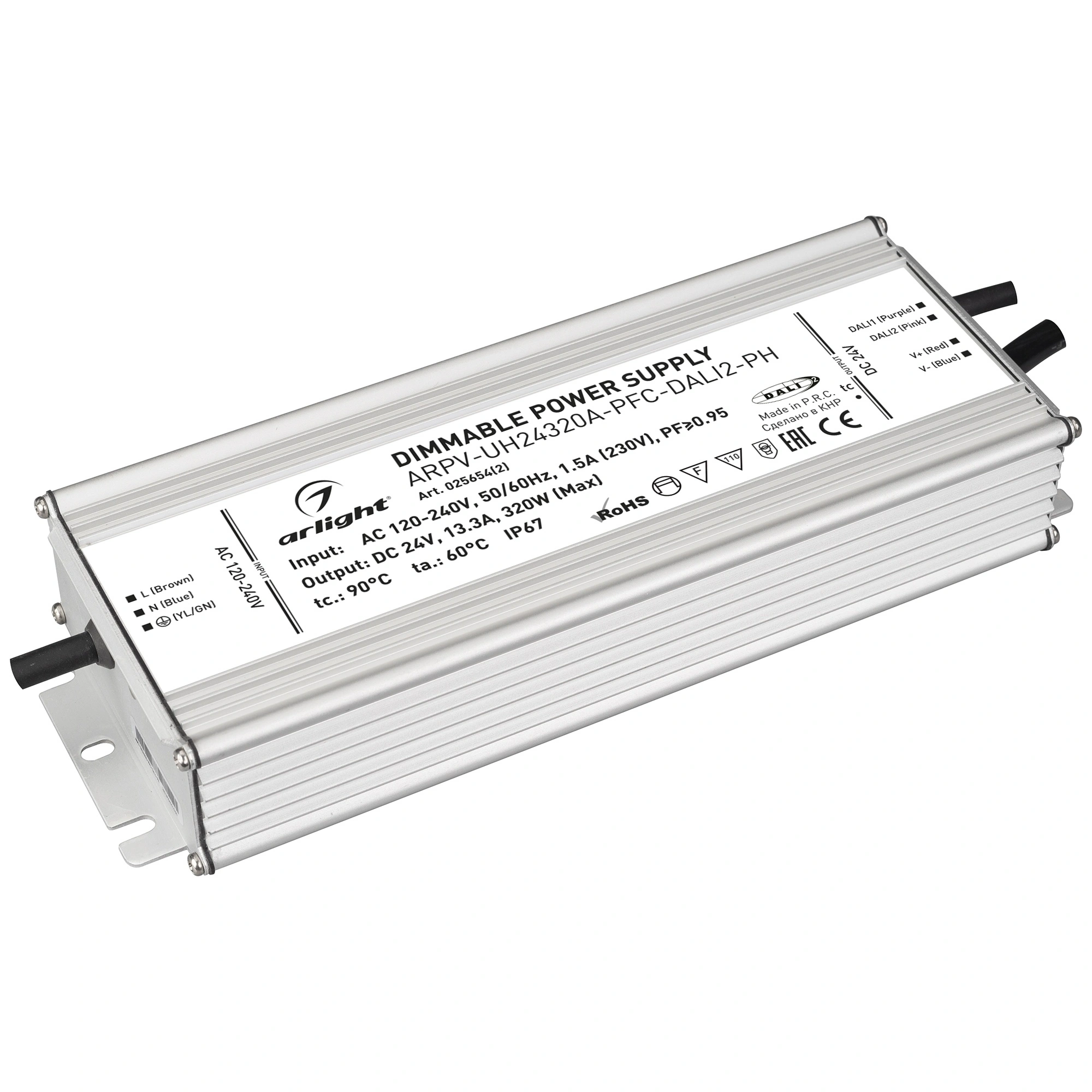 Диммируемый источник напряжения по протоколу DALI2.0 с гальванической развязкой для светодиодных изделий. Входное напряжение 120-240 VAC. Выходные параметры: 24 В, 13.3 А, 320 Вт. Встроенный PFC >0.95. Герметичный алюминиевый корпус IP 67. Рабочая температура -40…+70C⁰. Габаритные размеры длина 251 мм, ширина 68 мм, высота 38.5 мм. Гарантийный срок 7 лет.