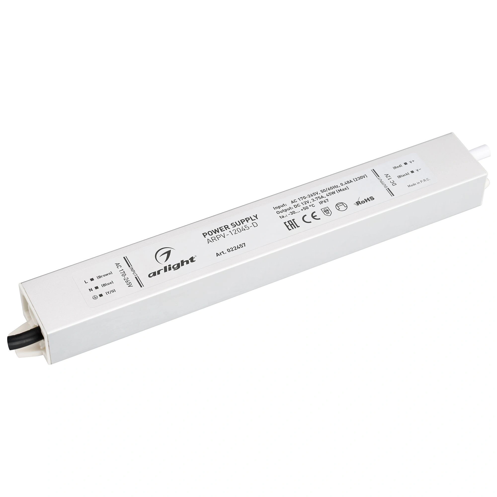 Источник напряжения с гальванической развязкой для светодиодных изделий. Входное напряжение 170-265 VAC. Выходные параметры: 12 В, 3,75 А, 45 Вт. Встроенный PFC >0,5. Герметичный алюминиевый корпус IP 67. Рабочая температура -30…+50C⁰. Габаритные размеры длина 217 мм, ширина 30 мм, высота 20 мм. Гарантийный срок 3 года.