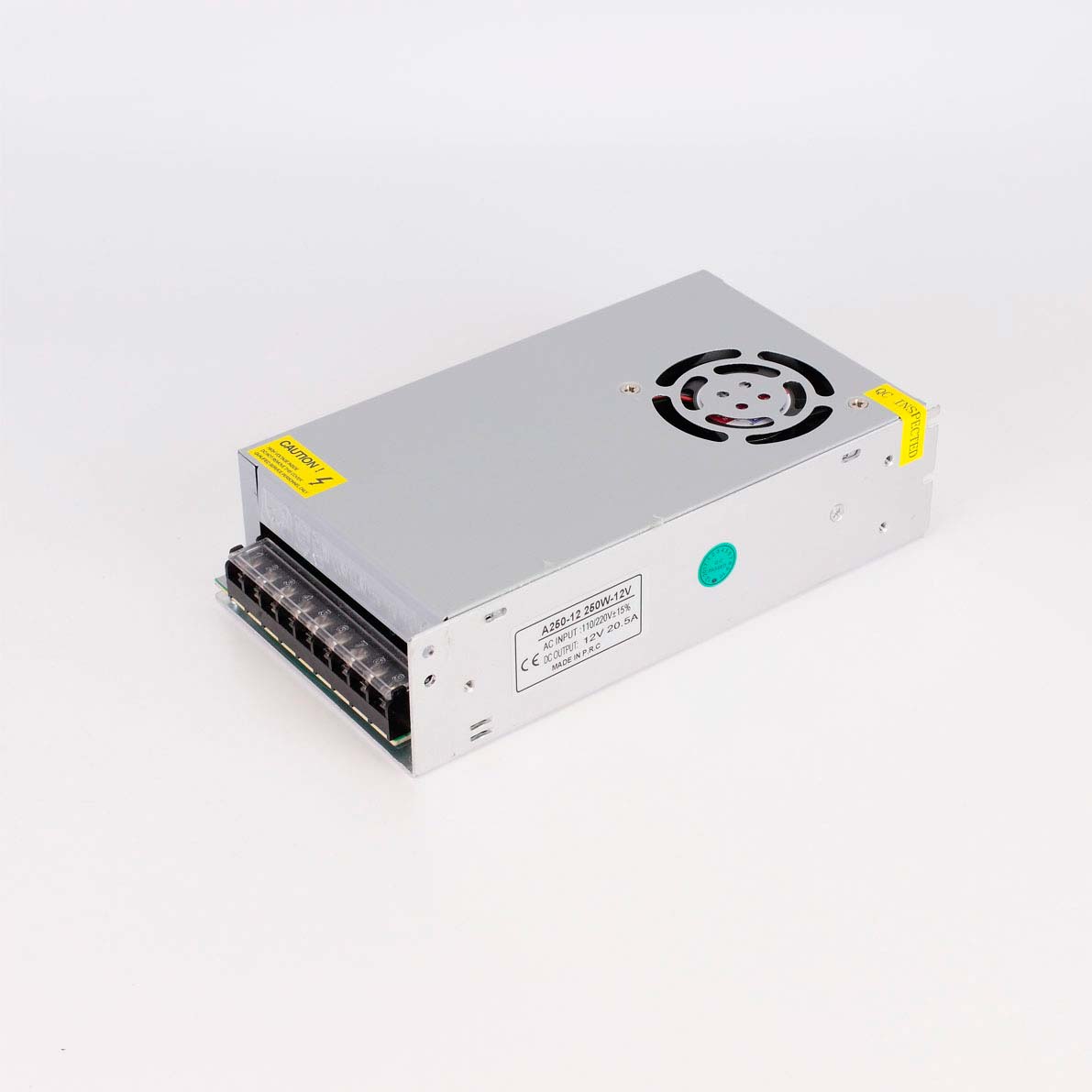 Блок питания 12V 240W 20A. В защитном кожухе. Степень защиты IP20. Входное напряжение 220V, выходное напряжение 12V. Подстроечный потенциометр. Размеры 200x98x42мм. Вес 510г.