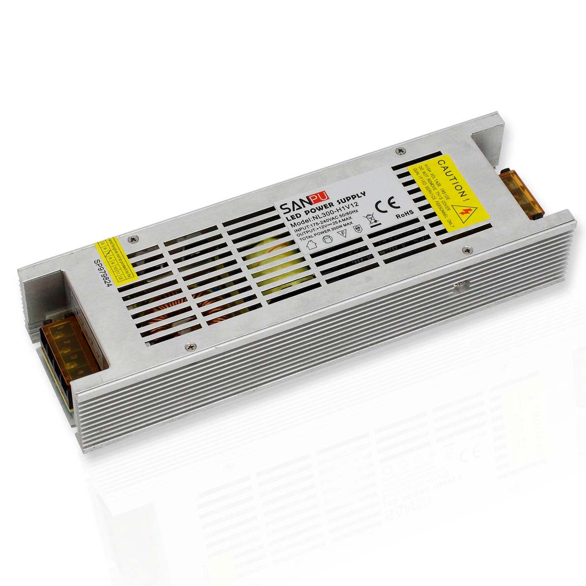 Блок питания 12V 300W 25A. В защитном кожухе. Степень защиты IP20. Входное напряжение 175-240V, выходное напряжение 12V. Производитель SANPU. Размеры 223x70x40мм. Вес 650г.