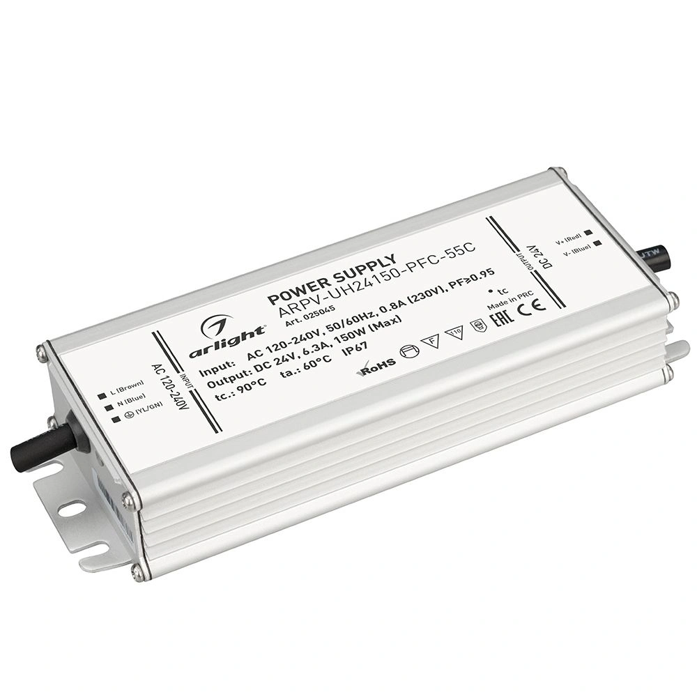 Источник напряжения с гальванической развязкой для светодиодных изделий. Предназначен для работы в условиях Крайнего Севера с запуском до -55С. Входное напряжение 120-240 VAC. Выходные параметры: 24 В, 6.3 А, 150 Вт. Встроенный PFC >0.95. Герметичный алюминиевый корпус IP 67. Рабочая температура -55…+70C⁰. Габаритные размеры длина 188 мм, ширина 67.5 мм, высота 33.5 мм. Гарантийный срок 5 лет.