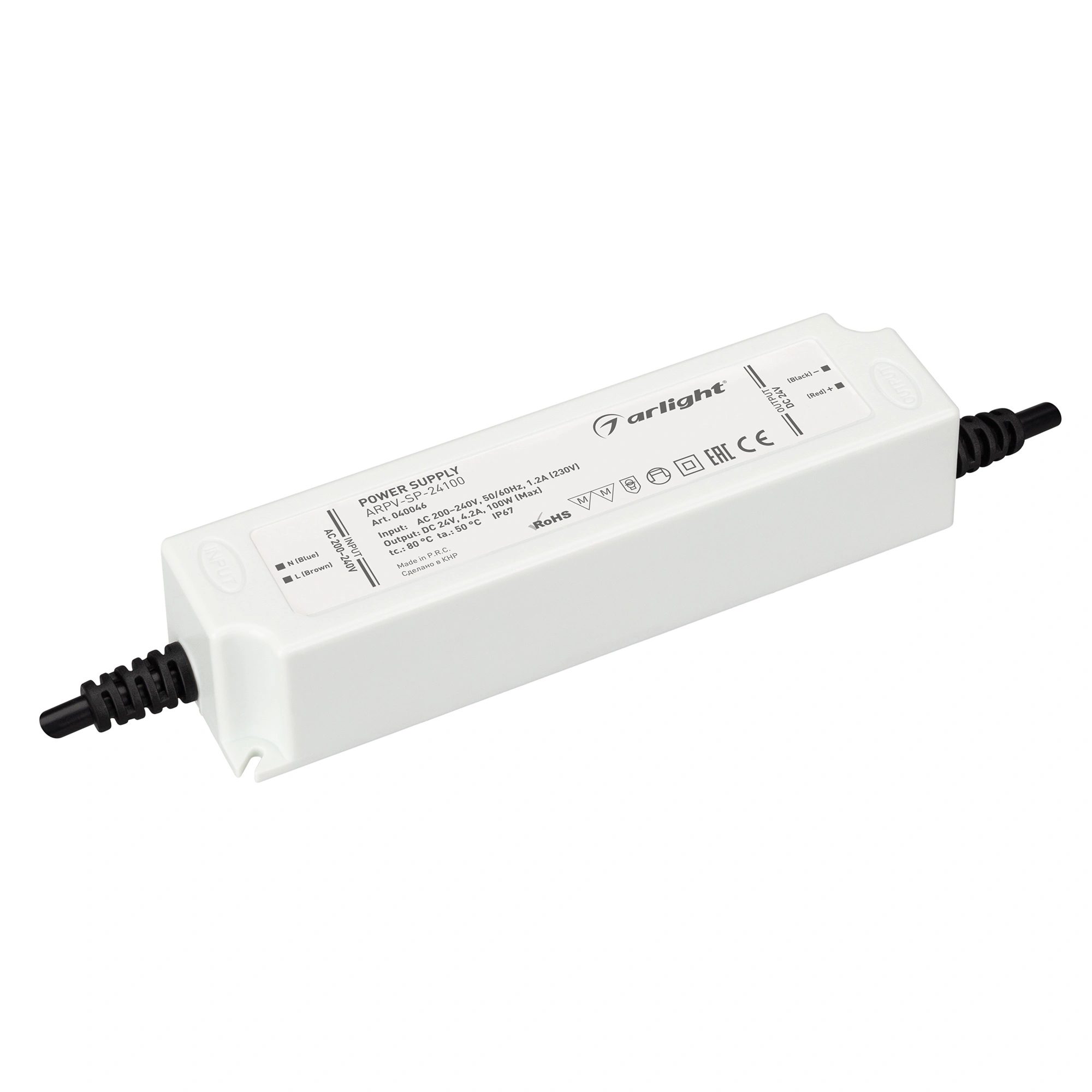 Источник напряжения с гальванической развязкой для светодиодных изделий. Входное напряжение 200-240 VAC. Выходные параметры: 24 В, 4,2 А, 100Вт. Встроенный PFC >0.5. Герметичный пластиковый корпус IP 67. Рабочая температура -30…+70C⁰. Габаритные размеры длина 162.5 мм, ширина 42.5 мм, высота 32 мм. Гарантийный срок 5 лет.