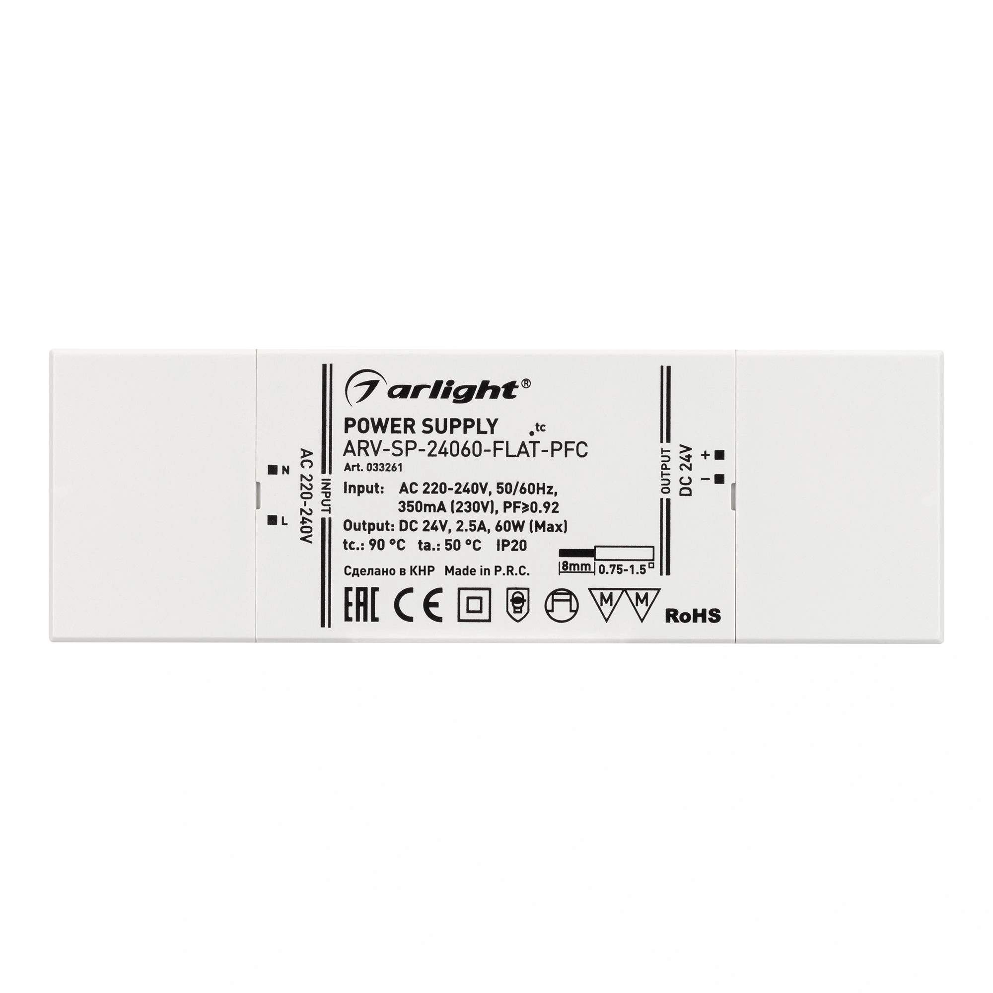 Источник напряжения с гальванической развязкой для светодиодных изделий. Входное напряжение 220-240 VAC. Выходные параметры: 24 В, 2.5 А, 60 Вт. Встроенный PFC >0.95. Сверхтонкий пластиковый корпус IP20. Габаритные размеры длина 170 мм, ширина 57 мм, высота 18 мм. Гарантийный срок 5 лет.