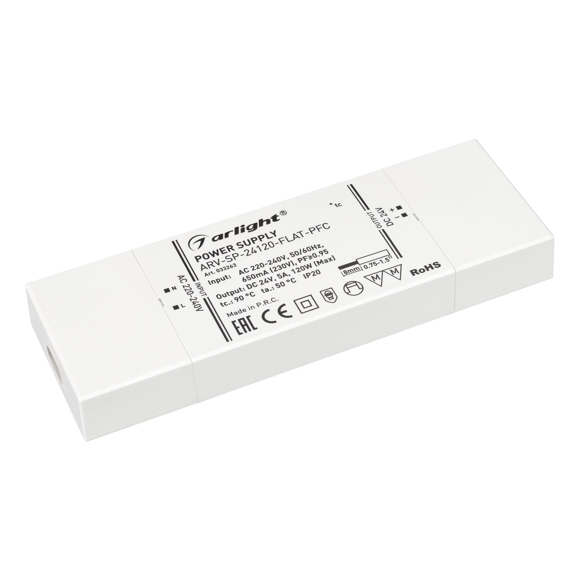 Источник напряжения с гальванической развязкой для светодиодных изделий. Входное напряжение 220-240 VAC. Выходные параметры: 24 В, 5 А, 120 Вт. Встроенный PFC >0.95. Сверхтонкий пластиковый корпус IP20. Габаритные размеры длина 190 мм, ширина 65 мм, высота 22 мм. Гарантийный срок 5 лет.