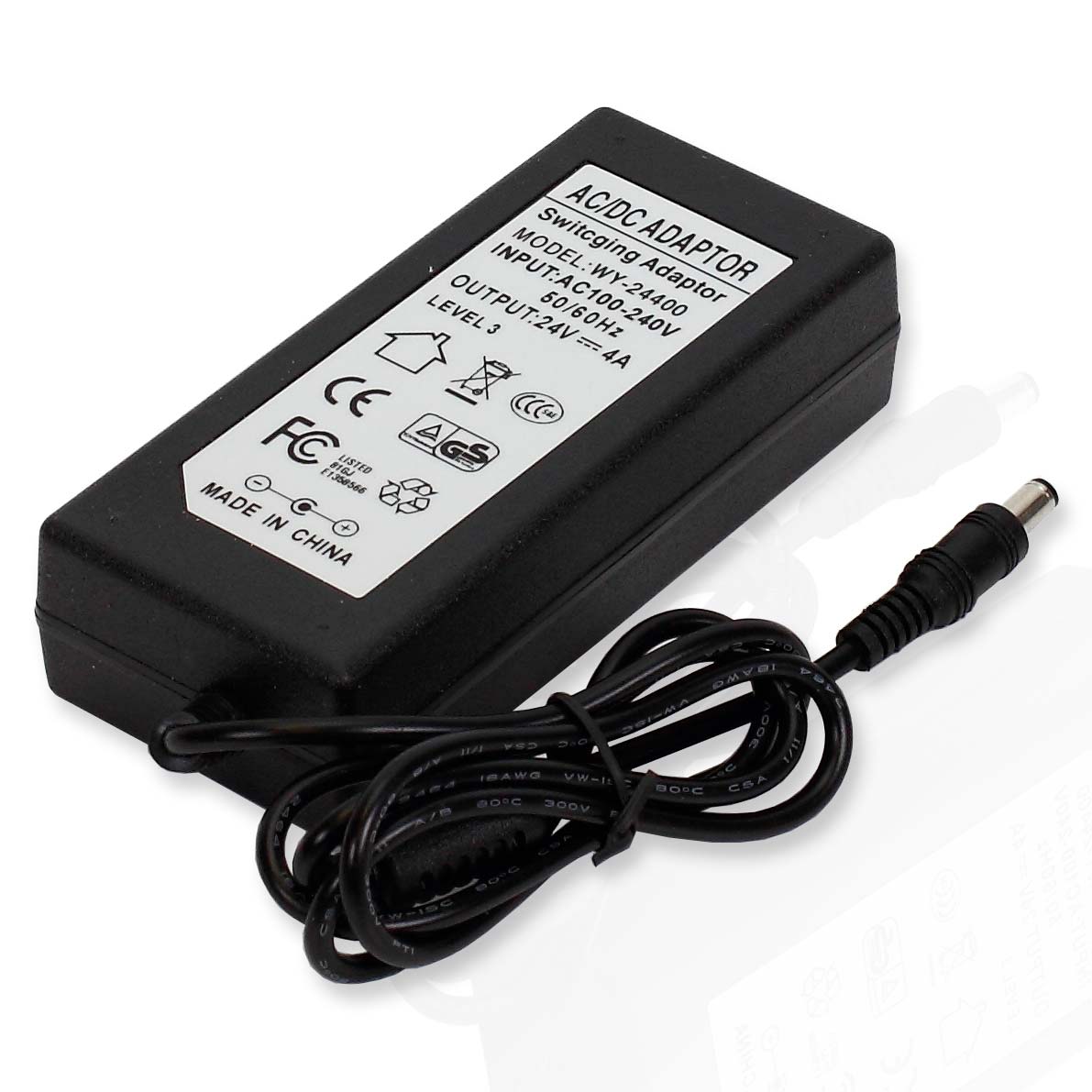 Сетевой адаптер ноутбучного типа 24V 96W 4A. Вход 100-240V, выход 24V. Штекер 5,5-2,1мм. Длина провода 900мм. Сетевой шнур в комплекте. Размеры 130x55x31мм. Вес 220г.