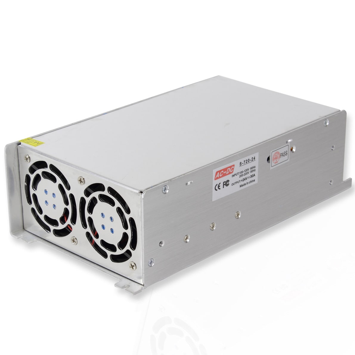 Блок питания 24V 720W 30A. В защитном кожухе. Степень защиты IP20. Входное напряжение 200-220V, выходное напряжение 24V. Размеры 255x137x74мм.