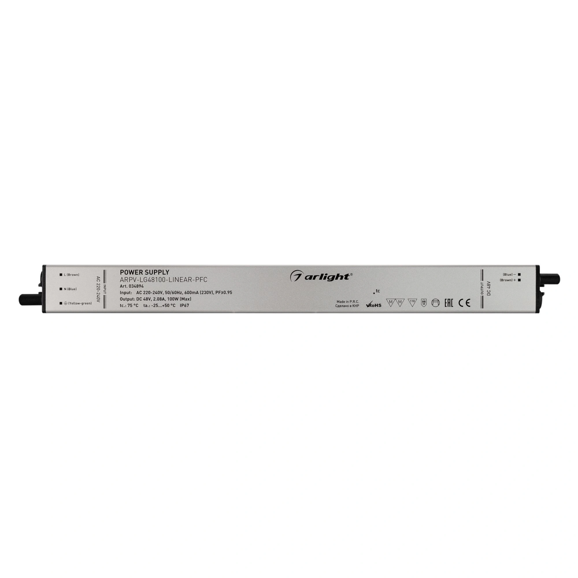 Источник напряжения с гальванической развязкой для светодиодных изделий. Входное напряжение 220-240 VAC. Выходные параметры: 48 В, 2.08 А, 100 Вт. Встроенный PFC >0.95. Тонкий металлический корпус IP67. Вход: 220-240VAC. Выход: 48VDC. Размер 320х30х21 mm.. Совместимость со стандартом EMC. Гарантия 5 лет.