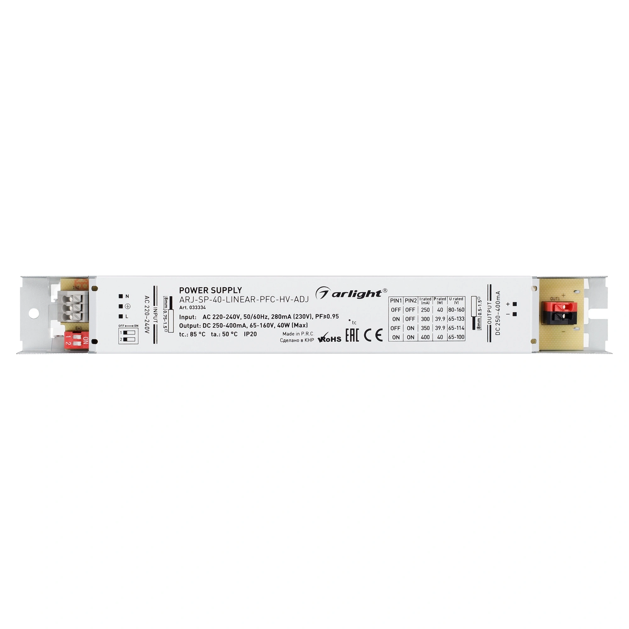 Регулируемый источник тока без гальванической развязки для светильников и мощных светодиодов. Входное напряжение 220-240 VAC. Выходные параметры: 80-140В (250мА), 65-133В (300мА), 65-114В (350мА), 65-100В (400мА), максимальная мощность 40 Вт. Встроенный PFC >0,95. Негерметичный металлический корпус IP 20. Габаритные размеры длина 230 мм, ширина 30 мм, высота 21 мм. Гарантийный срок 5 лет.