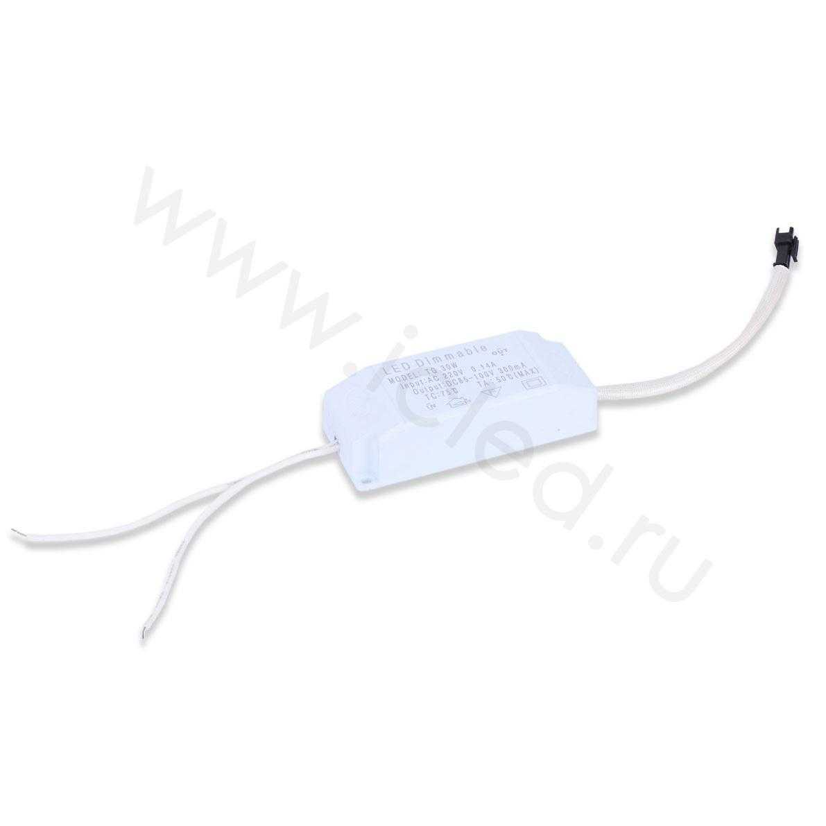 Драйвер диммируемый для мощных светодиодов. Пластиковый корпус. Напряжение питания 220V, выходное напряжение 85-100V, выходной ток 300mA, мощность 33W. Для 27-33 штук 1W светодиодов. Класс защиты IP40. Размеры 95x40x25мм. Вес 50г.