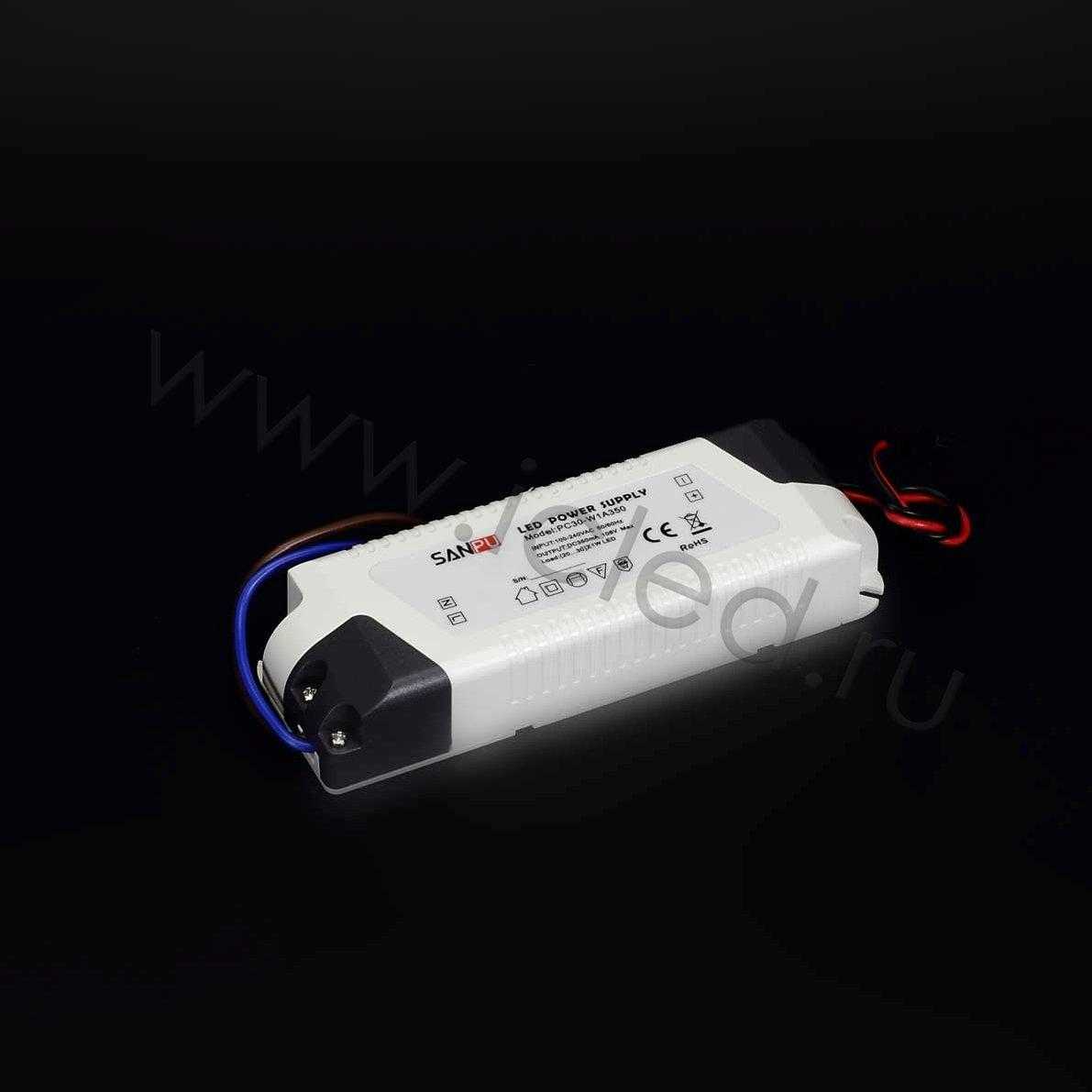 Стабилизатор тока для мощных светодиодов. Пластиковый корпус. Напряжение питания 100-240V, выходное напряжение 85V max, выходной ток 350mA. До 30 штук 1W светодиодов. Класс защиты IP40. Размеры 132x45x25мм. Вес 105гр.
