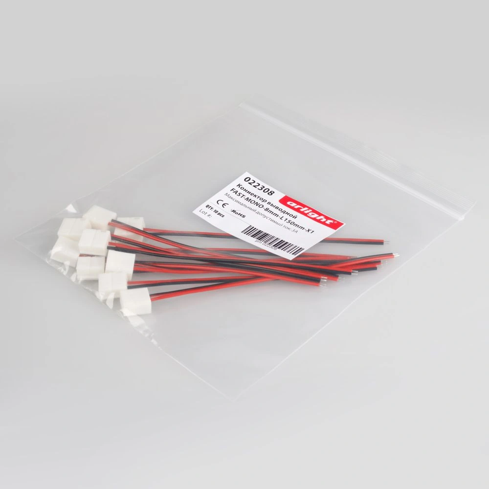 Одиночный коннектор с проводом 15см для подключения питания к ГЕРМЕТИЧНЫМ светодиодным одноцветным лентам шириной 8мм. Максимальный допустимый ток 3А, напряжение до 50 В. Цена за 1шт.