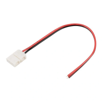 Одиночный коннектор с проводом 15см для подключения питания к открытым светодиодным одноцветным лентам (3528, 2835) шириной 8мм. Максимальный допустимый ток 3А, напряжение до 50 В. Цена за 1шт.