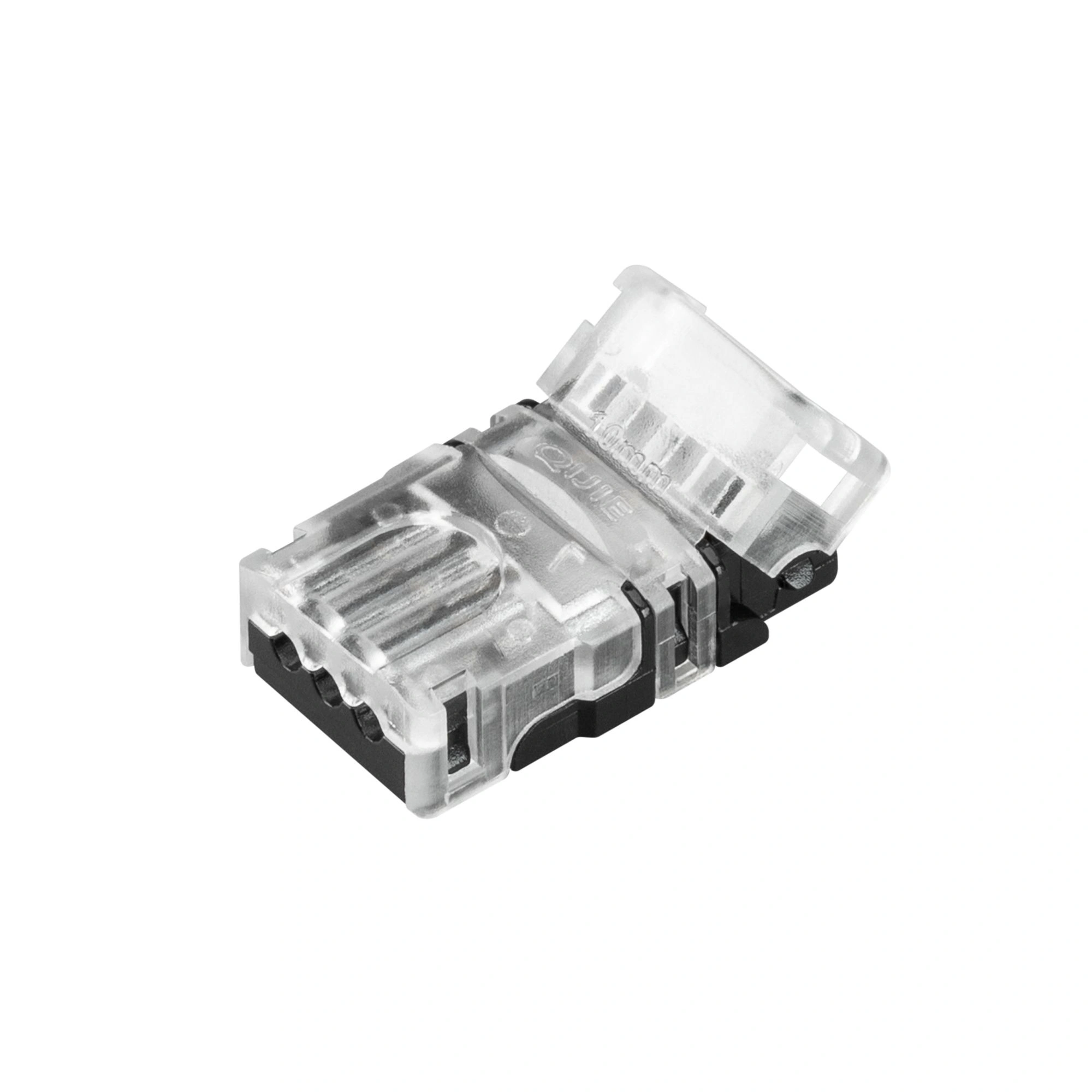 Одиночный коннектор (без провода) для подключения питания к открытым лентам MIX шириной 10 мм. Очистка провода питания (0,34-0,75 мм2) от изоляции не требуется. Материал - прозрачный пластик. Максимальный допустимый ток 3 А, напряжение 3-24 В, степень защиты IP33. Цена за 1 шт.