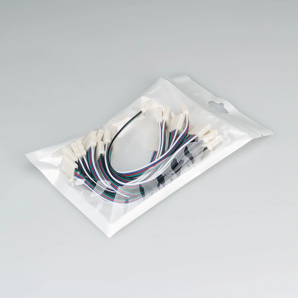 Двойной пластиковый коннектор с проводом 15 см для соединения двух отрезков открытых светодиодных лент RGB+W шириной 12 мм. Максимальный допустимый ток 3 А, напряжение до 50 В.