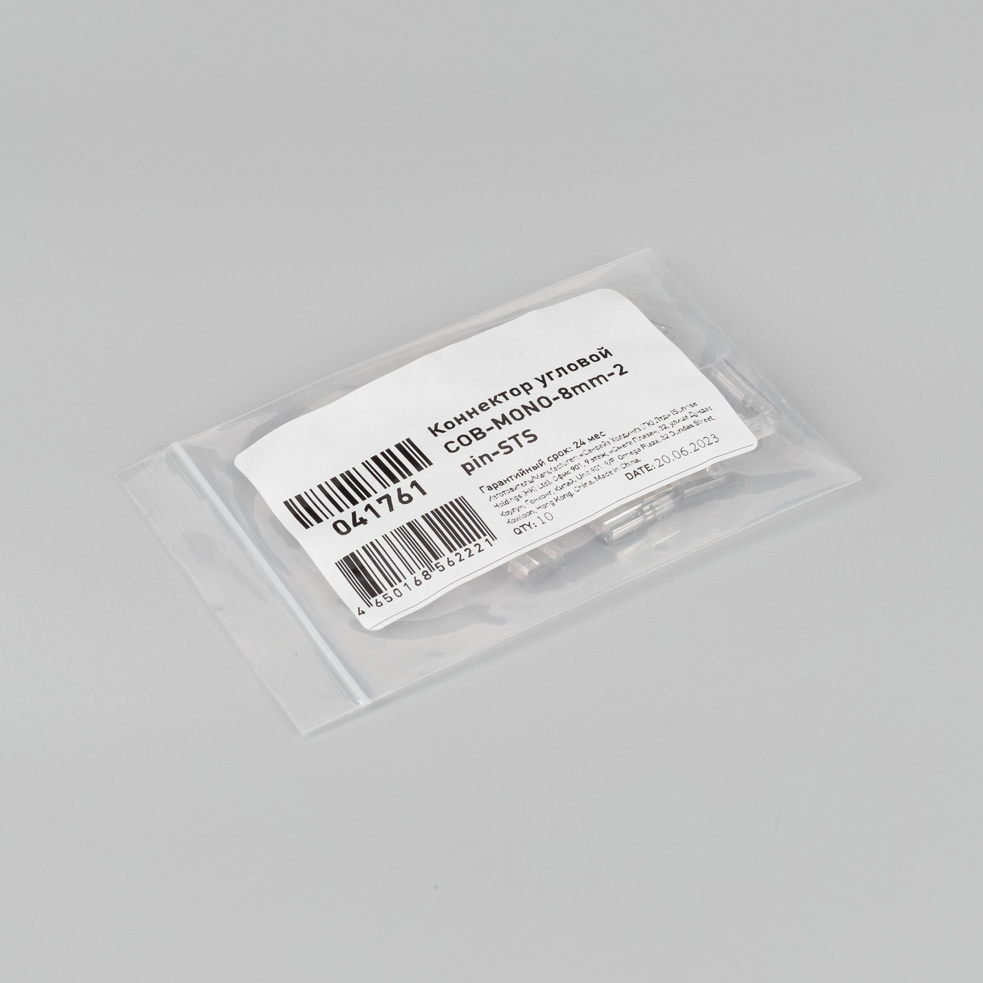 Угловой коннектор для соединения 2-х отрезков открытых светодиодных одноцветных COB лент шириной 8 мм.