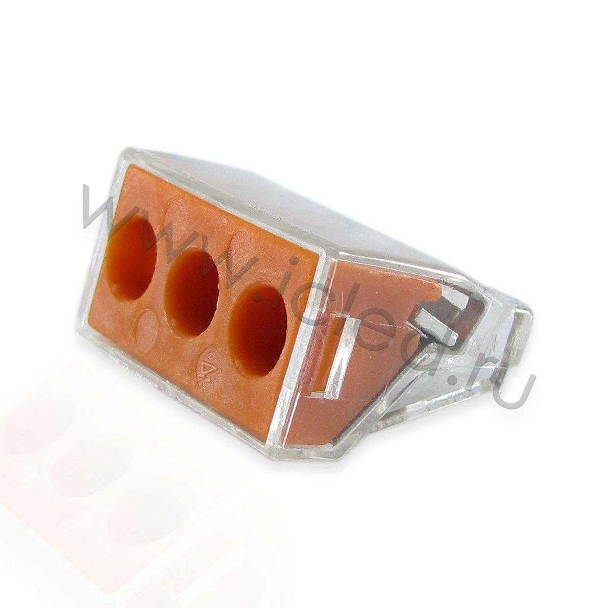 Клеммник 773 серии. Вход 0,75-2,5 кв.мм. Напряжение 250V, ток до 25А. Предназначены для присоединения одножильных проводников в распределительных коробках. Оснащены самозажимной системой соединения. Размеры 20x26x15мм. Вес 6 гр.