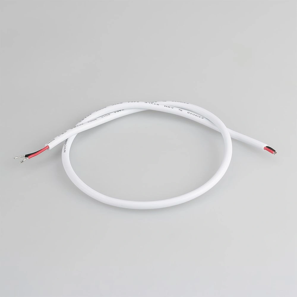 Провод питания для гибкого неона MOONLIGHT. 2 проводника, калибр проводника 20AWG, материал проводника - лужёная медь, внешний диаметр 4,5 мм. Внешняя оболочка - ПВХ белого цвета. Длина кабеля в отрезке - 500 мм.