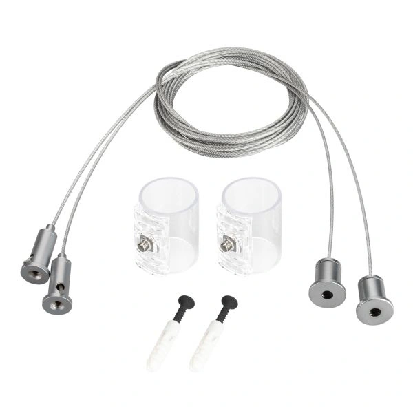 Горизонтальный подвес предназначен для герметичной ленты серии MOONLIGHT D25. Подвес состоит из двух отрезков горизонтальной трубки длиной 38 мм и тросов длиной 2м. Он подходит для любых потолочных поверхностей и совместим с прозрачными трубками с боковым выводом кабеля. Подвес поможет создать уникальное дизайнерское решение для вашего проекта.