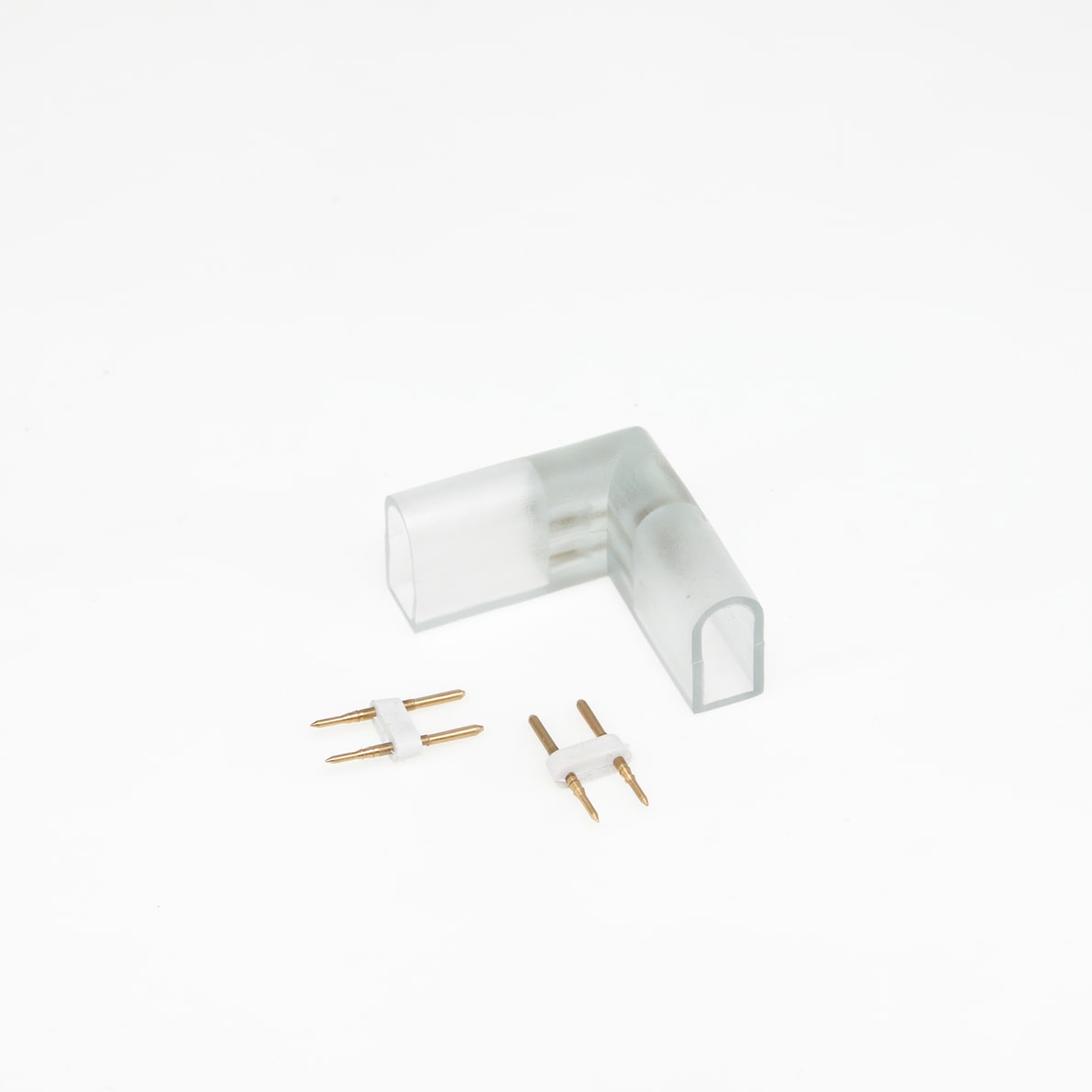 Соединитель угловой для одноцветного неона 0616 LN50. Расстояние между жилами 7мм. Размер 39x39x20мм. Вес 12г.