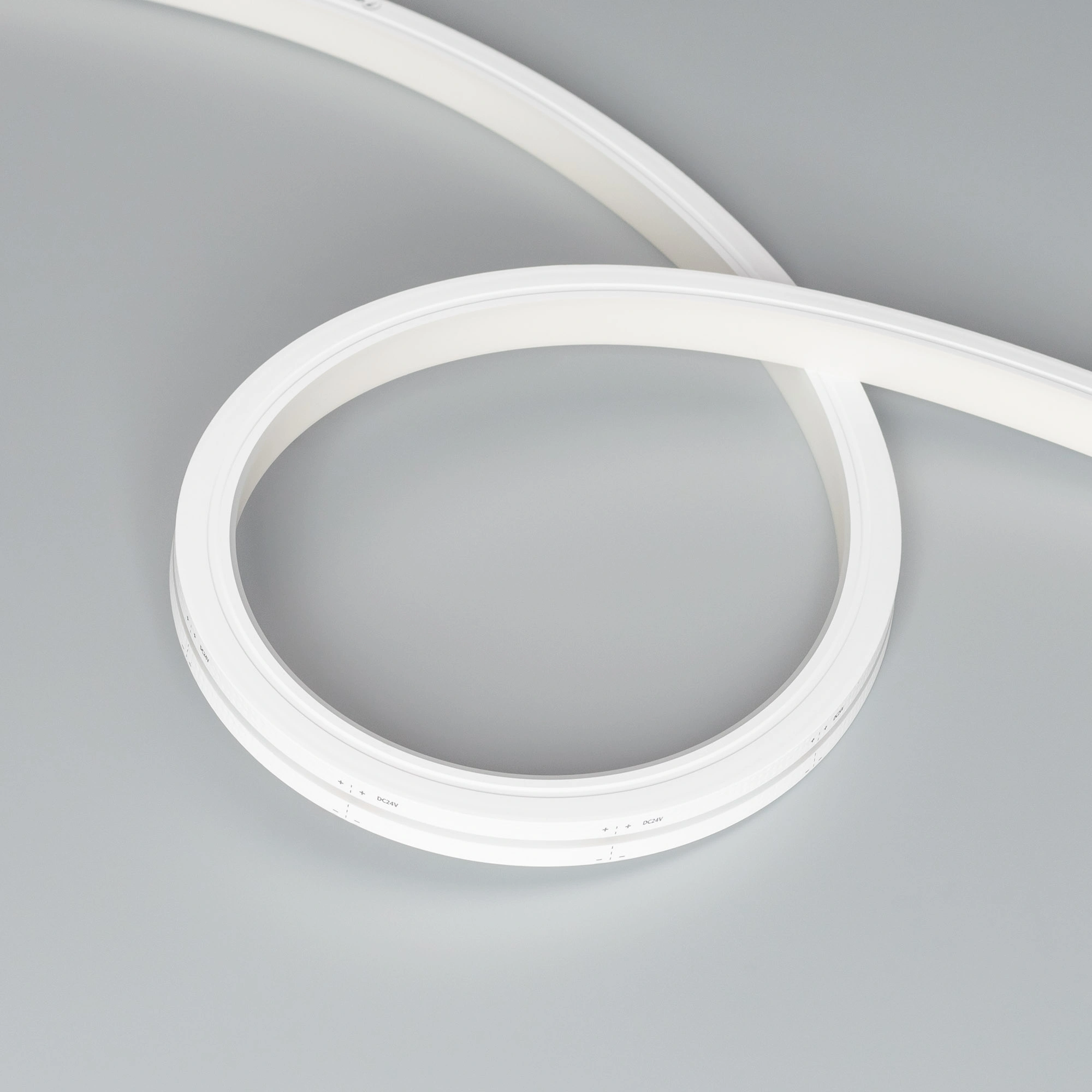 Гибкая герметичная лента MOONLIGHT имеет сечение 12×13 мм и оснащена 120 светодиодами SMD2835 на метр. Красный цвет свечения позволит добиться нужной атмосферы. Лента потребляет всего 8 Вт/м и работает от 24 V. Она обладает классом пылевлагозащиты IP67, что позволяет использовать ленту в т.ч. во влажных помещениях и на улице, и имеет минимальный радиус изгиба 60 мм (сам изгиб вертикальный/TOP). Минимальный отрезок ленты составляет 50 мм, а угол излучения - 115°. Габариты ленты составляют 5000×12×13 мм. Кабель питания длиной 500 мм выводится с двух сторон перпендикулярно линии сечения ленты. Катушка содержит 5 м ленты. Цена указана за 1 м ленты. Гарантия на ленту составляет 3 года. Список совместимых аксессуаров, с помощью которых можно создавать уникальные декоративные композиции, находится в разделе "Совместимые".