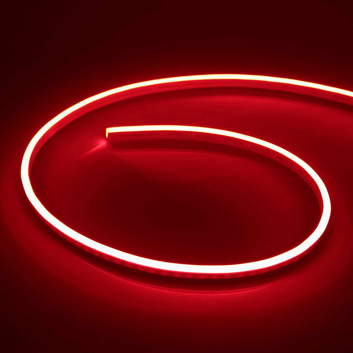 Светодиодный гибкий неон. Цвет свечения красный. Угол свечения 120 градусов. Напряжение 12V, светодиоды 2835, 120шт/м, мощность 9,6Вт/м, размеры 5 0000х5х12мм. Класс защиты IP65. Шаг нарезки 25мм. Норма отпуска от 1м. В катушке 50м. ВНИМАНИЕ! Подключать неон одним куском не более 5м. Светодиодный гибкий неон 12V наиболее востребован в рекламных вывесках, освещении зданий в качестве контурной подсветки, авто-мото тюнинге. Низковольтное питание неона безопасно при использовании во влажных помещениях и на улице.