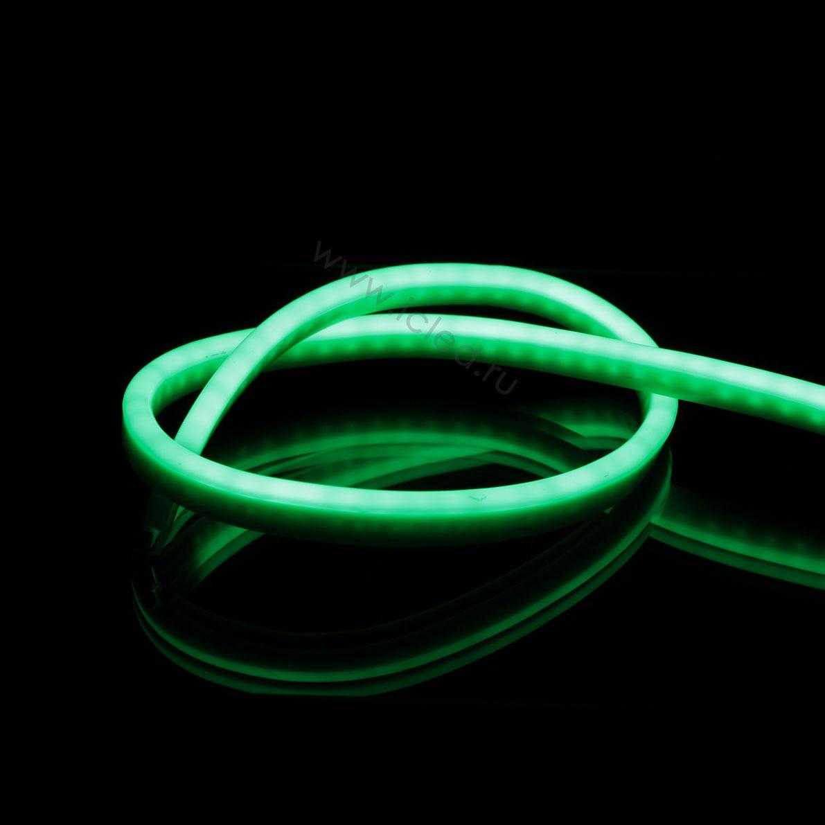 Светодиодный гибкий неон. Цвет свечения зеленый, угол свечения 120 градусов. Напряжение 12V, мощность 9,6Вт на метр, размеры 5 000х6х12 мм. Класс защиты IP65. В катушке 50м (подключать не более 5м последовательно). Вес 14кг. Норма отпуска от 5м, шаг нарезки 0,25м. Светодиодный гибкий неон 12V наиболее востребован в рекламных вывесках, освещении зданий в качестве контурной подсветки, авто-мото тюнинге. Низковольтное питание неона безопасно при использовании во влажных помещениях и на улице.