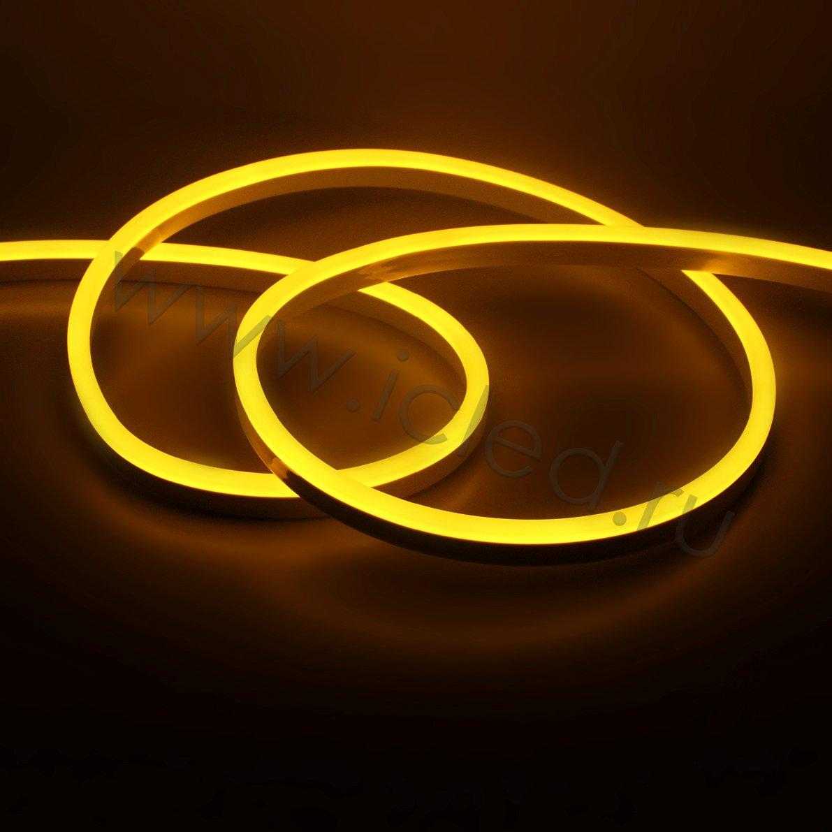 Светодиодный гибкий неон. Угол свечения 120 градусов, цвет свечения желтый. Напряжение 220V, мощность 9,6W на метр, размеры 50 000*8*16 мм. Класс защиты IP65. В катушке 50м. Вес 7кг. Норма отпуска 1м, шаг нарезки 1м. Подключение производить с помощью выпрямителя АС/DC 220V. Светодиодный гибкий неон 220V наиболее востребован в архитектурном освещении зданий в качестве контурной подсветки.