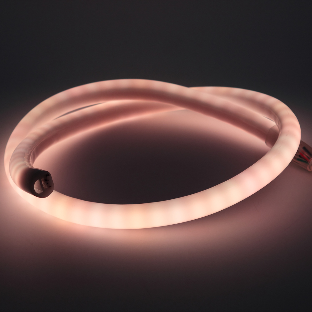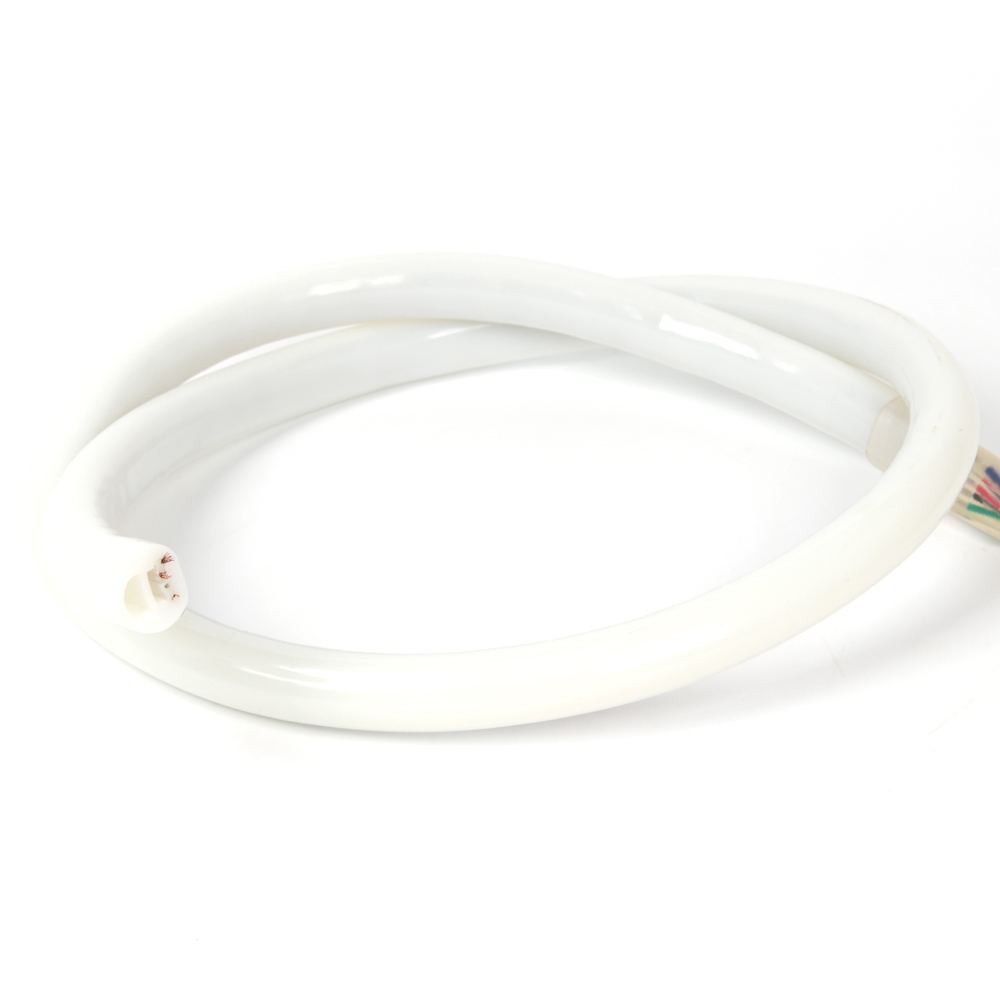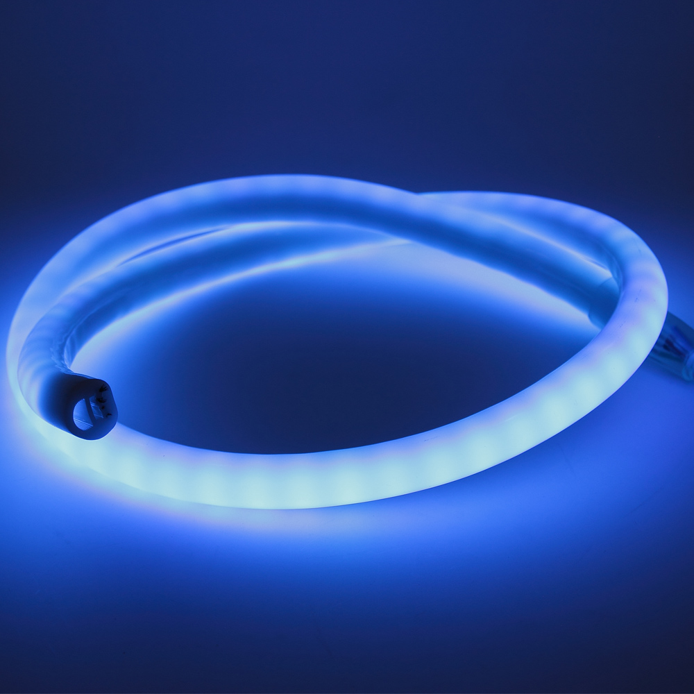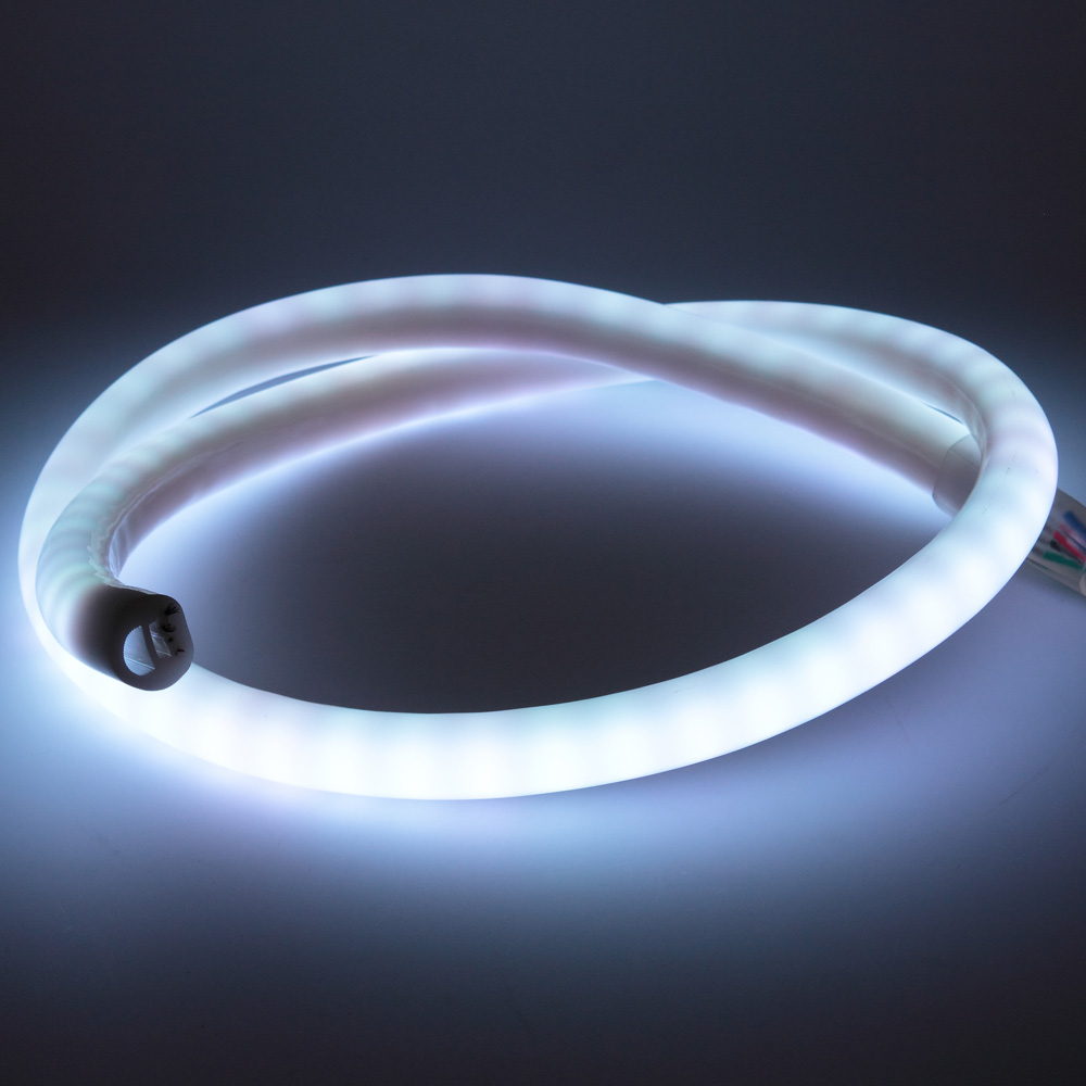 Круглый светодиодный гибкий неон. Угол свечения 270 градусов, цвет свечения RGB. Напряжение 220VDC, мощность 8W/m, диаметр 18мм, длина 5000мм. Класс защиты IP65. В катушке 50м. Вес каушки 12кг. Норма отпуска от 1м, шаг нарезки 1м. Подключение производить с помощью выпрямителя АС/DC 220V. Ширина контактов 11мм. Светодиодный гибкий неон 220V наиболее востребован в архитектурном освещении зданий в качестве контурной подсветки.