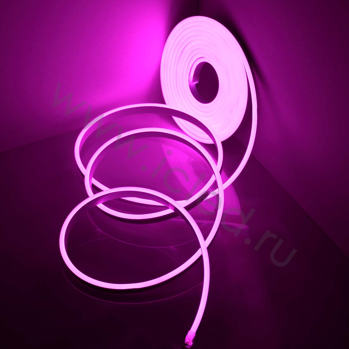 Светодиодный гибкий неон. Цвет свечения розовый. Угол свечения 120 градусов. Напряжение 24V, светодиоды 2835, 120шт/м, мощность 9,6Вт/м, размеры 5 000х4.5х13мм. Класс защиты IP65. Шаг нарезки 50мм. В комплекте с гнездом 5,5х2,1мм. Размер упаковки 270x220x25мм. Вес 460г. Светодиодный гибкий неон 24V наиболее востребован в рекламных вывесках, освещении зданий в качестве контурной подсветки, авто тюнинге.. Низковольтное питание неона безопасно при использовании во влажных помещениях и на улице.