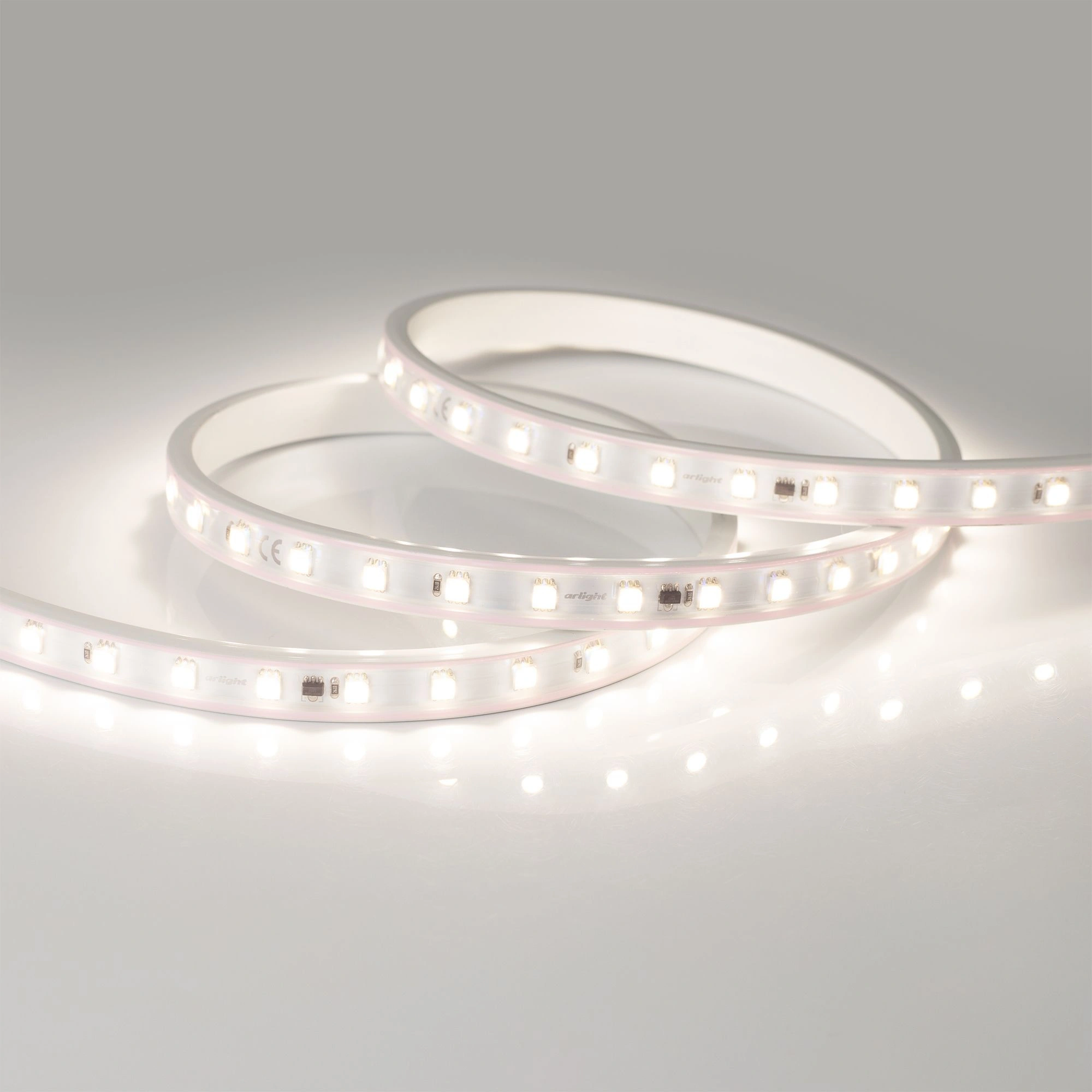 Герметичная лента в силиконовой трубке (IP65) шириной 15.5 мм. Светодиоды SMD 5060 (54 шт/м) дневного белого цвета свечения (4000 К) с высоким индексом цветопередачи (CRI>90). Лента подключается непосредственно к сети переменного тока 230 В и не требует использования источников питания. Использование интегральных стабилизаторов тока позволяет подключать ленту длиной до 50м, обеспечивая при этом равномерную яркость свечения по всей ленты. При подключении нескольких лент, подавать питание на каждые 50м отдельным кабелем. Запрещается последовательное подключение лент более 50м. Равномерное и яркое свечение по всей длине ленты обеспечивается стабилизаторами тока. Подсветка потолочных ниш, декоративная подсветка, создание контуров рекламных объектов. Может использоваться в помещениях и на улице. В комплект входит заглушка и провод питания. Крепление на скобы или профиль (приобретаются дополнительно). Диммирование осуществляется диммерами TRIAC в диапазоне 15%-90%.