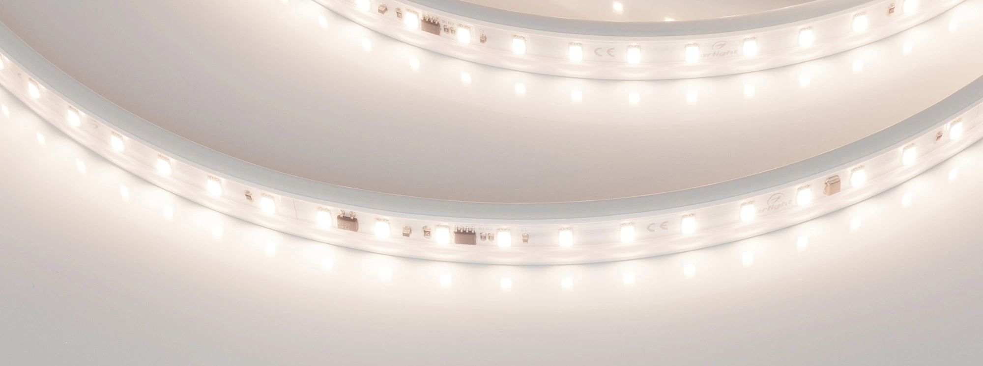 Стабилизированная лента шириной 15.5 мм в прозрачной ПВХ-оболочке с высокой степенью пылевлагозащиты (IP65). Светодиоды SMD 5630 (72 шт/м) дневного белого цвета свечения (4000 К) с индексом цветопередачи CRI>80. Использование интегральных стабилизаторов тока позволяет подключать ленту длиной до 50м, обеспечивая при этом равномерную яркость свечения по всей ленты. При подключении нескольких лент, подавать питание на каждые 50м отдельным кабелем. Запрещается последовательное подключение лент более 50м. Прозрачные коннекторы для создания непрерывных световых линий. Лента изгибается вертикально от плоскости. Контурная подсветка, оформление наружной рекламы. Крепление на скобы. В комплекте заглушка и провод питания. Диммирование осуществляется диммерами TRIAC в диапазоне 15%-90%.