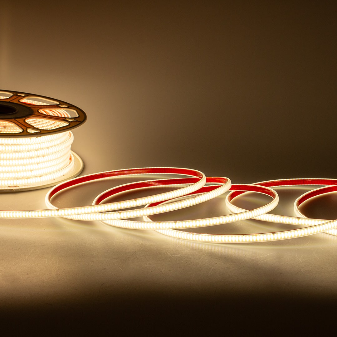 Светодиодная лента 220V с двусторонним скотчем. Светодиод COB, 240 кристаллов на метр, угол свечения 120 градусов, цвет свечения дневной белый 3500-4000К. Напряжение 220V, мощность 9,6W на метр, световой поток 600Lm/m. Кратность реза 100мм. Размеры 50000x10x5 мм. Класс защиты IP65. В катушке 50м. Размеры коробки 280х280х100мм. Вес 2700г. Норма отпуска от 1м. Внимание! Высокое напряжение, подключение осуществлять квалифицированным специалистом.