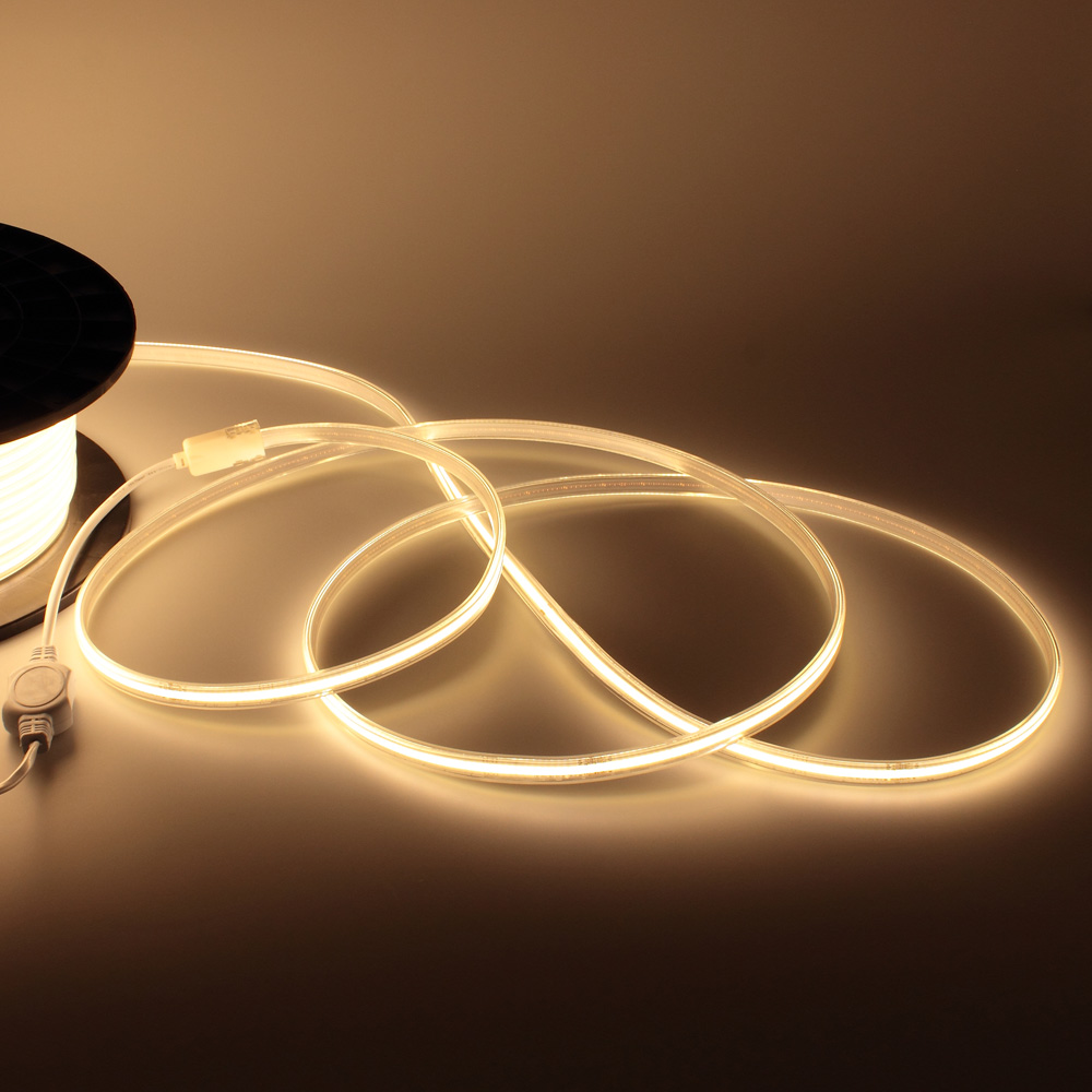 Светодиодная лента. Тип светодиода COB (320 chip/m), угол свечения 120 градусов, цвет свечения теплый белый 3000K, световой поток 420Lm/m. Напряжение питания DC220V, мощность 9W/m, размеры 50000x12,5x6мм. Кратность реза 500мм. Класс защиты IP68. Катушка 50м. Размер упаковки 260x260x150мм. Вес 4600г. Норма отпуска от 1м. Внимание! Для подключения светодиодной ленты 220V к сети переменного тока 220 Вольт потребуется сетевой шнур-выпрямитель, который приобретается отдельно. Светодиодная лента 220V получила наибольшее распространение в архитектурном освещении зданий в качестве контурной подсветки.