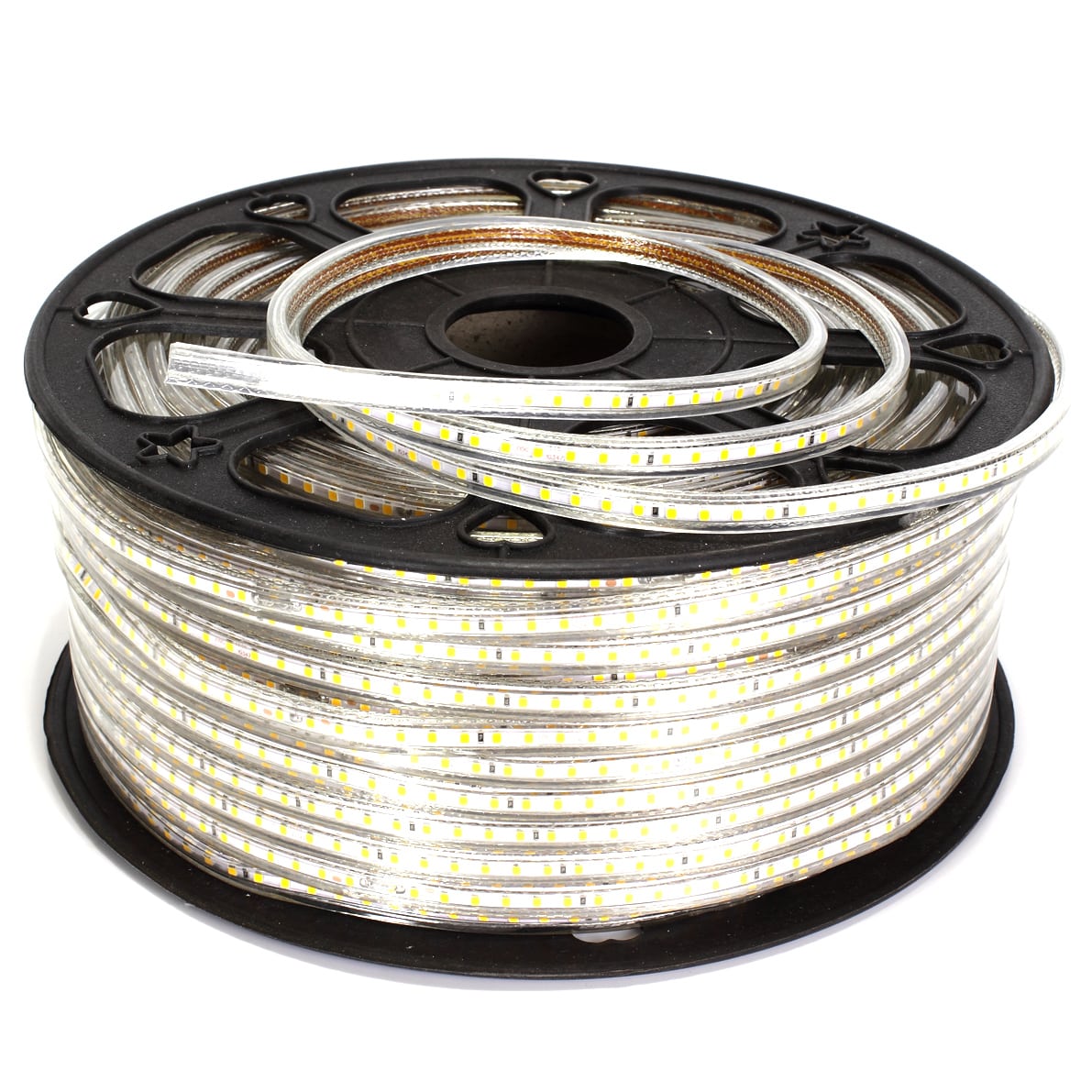 Светодиодная лента. Тип светодиода 2835, 120 светодиодов на метр, угол свечения 120 градусов, цвет свечения теплый белый 3200K, световой поток 900Lm. Напряжение 220V, мощность 18W на метр, размеры15x8x50 000 мм. Класс защиты IP68. В катушке 50м. Норма отпуска 1м. Внимание! Для подключения светодиодной ленты 220V к сети переменного тока 220 Вольт потребуется сетевой шнур-выпрямитель, который приобретается отдельно. Светодиодная лента 220V получила наибольшее распространение в архитектурном освещении зданий в качестве контурной подсветки.