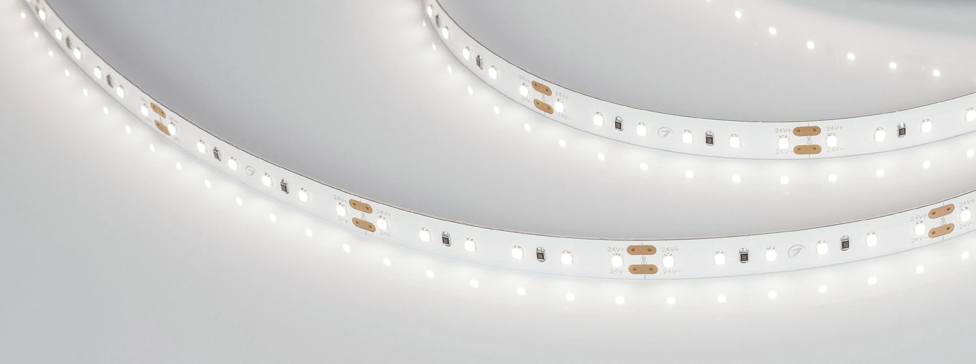 Маломощная лента MICROLED шириной 8 мм с высоким индексом цветопередачи (CRI>90). Светодиоды SMD 2216 (120 шт/м) дневного белого цвета свечения (5000 K). Мощность 6.5 Вт/м, напряжение питания 24 В. Сниженное энергопотребление. Декоративная подсветка интерьеров, потолочных ниш, рабочих зон кухни и мебели. Минимальный отрезок 50 мм (6 светодиодов).