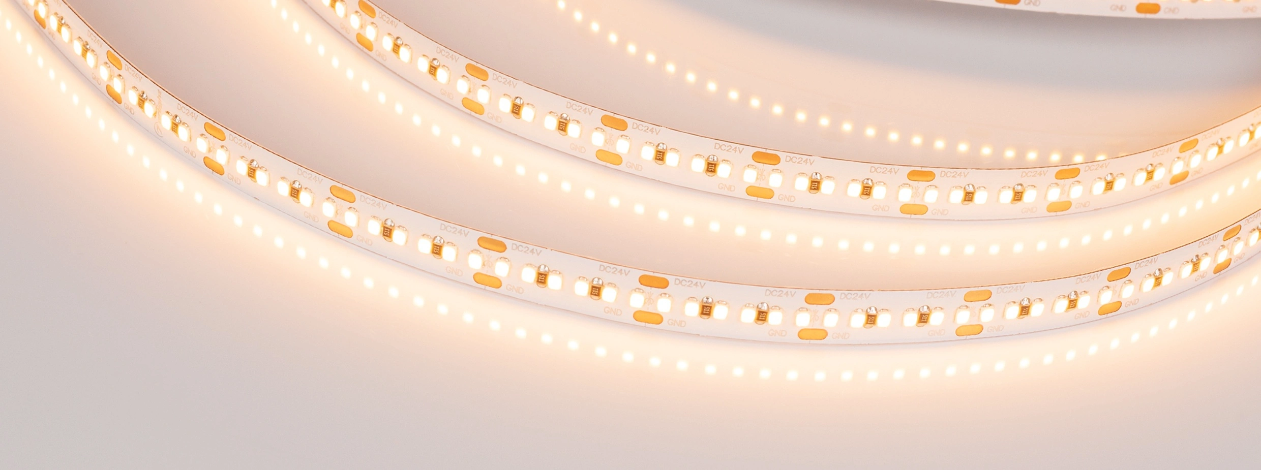 Лента MICROLED шириной 8 мм с высоким индексом цветопередачи (CRI>90). Светодиоды SMD 2216 (300 шт/м) теплого белого цвета свечения (2700 K). Мощность 8 Вт/м, напряжение питания 24 В. Плотная установка светодиодов позволяет убрать видимость точек светодиодов при использовании ленты в алюминиевом профиле небольшой глубины с матовым рассеивателем. Подходит для основного освещения и создания ярких декоративных линий. Минимальный отрезок 20 мм (6 светодиодов).