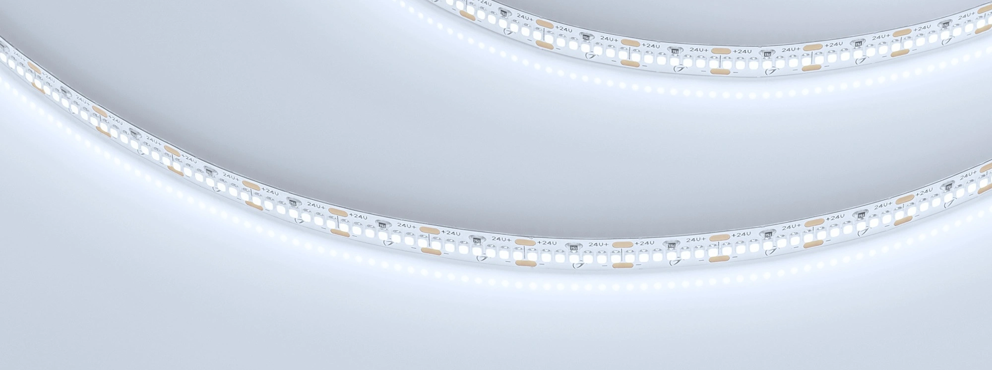 Лента MICROLED шириной 8 мм с высоким индексом цветопередачи (CRI>90). Светодиоды SMD 2216 (420 шт/м) белого цвета свечения (6000 K). Мощность 9.6 Вт/м, напряжение питания 24 В. Плотная установка светодиодов позволяет убрать видимость точек светодиодов при использовании ленты в алюминиевом профиле небольшой глубины с матовым рассеивателем. Подходит для основного освещения и создания ярких декоративных линий. Минимальный отрезок 16.77 мм (7 светодиодов).
