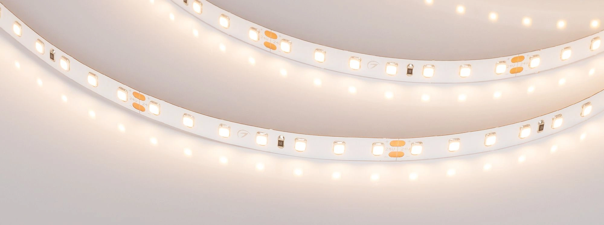 Открытая светодиодная лента шириной 8 мм и мощностью 10 Вт/м с очень высоким индексом цветопередачи CRI>95... 98. Светодиоды SMD 2835 (98 шт/м) белого теплого цвета свечения (3000 К). Напряжение питания 24 В. Минимальный отрезок 71.43 мм (7 светодиодов). Для организации освещения в помещениях с повышенными требованиями к качеству света: учебные заведения, музеи, шоурумы и другие помещения.