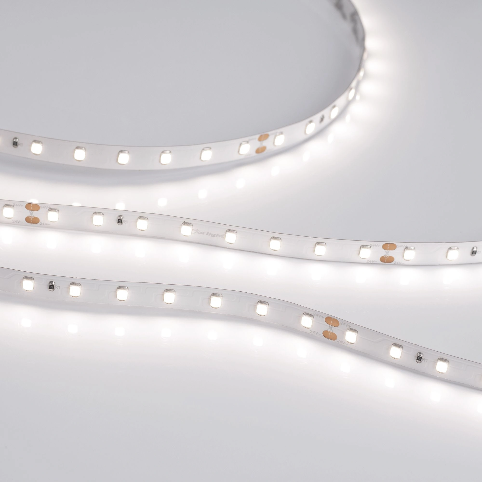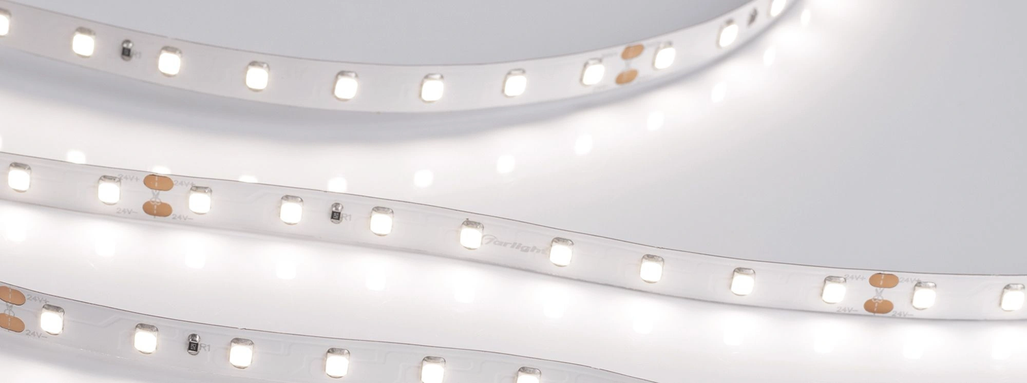 Открытая светодиодная лента шириной 8 мм и мощностью 6 Вт/м с индексом цветопередачи CRI>85. Светодиоды SMD 2835 (80 шт/м) дневного белого цвета свечения (3800–4200 К). Напряжение питания 24 В. Минимальный отрезок 100 мм (8 светодиодов). Высокая световая эффективность 150 лм/Вт позволяет создать качественное освещение в любых помещениях. Лента применяется для декоративной подсветки интерьеров, потолочных ниш, рабочих зон кухни, мебели, а также подходит для подсветки рекламных конструкций и витрин.