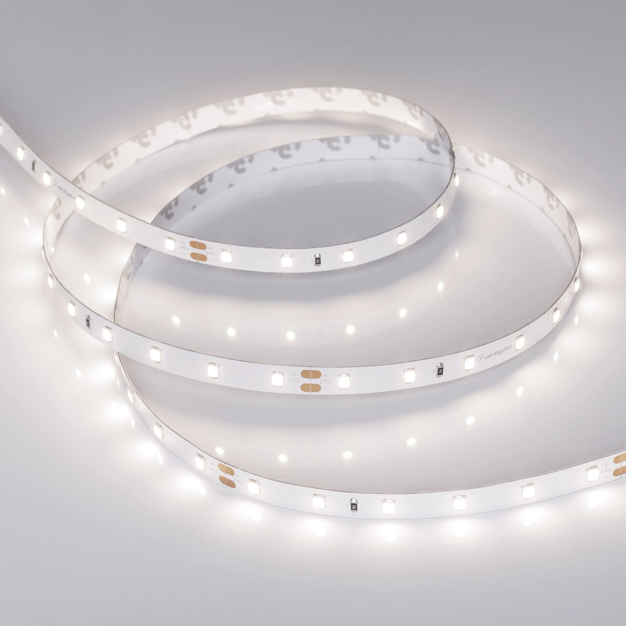 Светодиодная лента RT-A60, открытая. Светодиоды 2835, 60 шт/м (300 шт на 5 м), белая плата, ширина 8 мм, скотч 3M. Цвет ДНЕВНОЙ 4000 K, цветопередача CRI>85, угол 120°. Питание 24V, мощность 7.2 Вт/м (36 Вт на 5 м). Размеры 5000x8x1.5 мм. Мин. отрезок 100 мм, 6 светодиодов. Цена за 1 м.