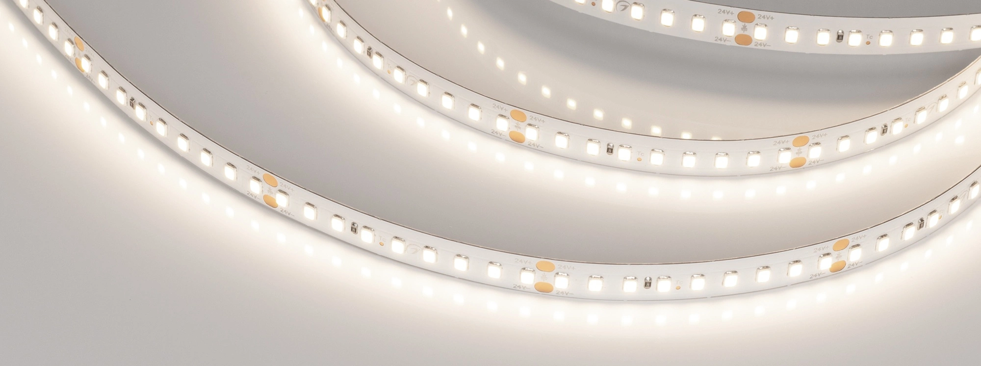 Светодиодная высокоэффективная лента RT-A144, открытая. Светодиоды 2835, 144 шт/м (720 шт на 5 м), белая плата, ширина 10 мм, скотч 3M. Цвет ДНЕВНОЙ 4000 K, цветопередача CRI>85, угол 120°. Питание 24 В, мощность 7.7 Вт/м (38.5 Вт на 5 м). Размеры 5000x10x1.6 мм. Мин. отрезок 62.5 мм, 9 светодиодов. Цена за 1 м.