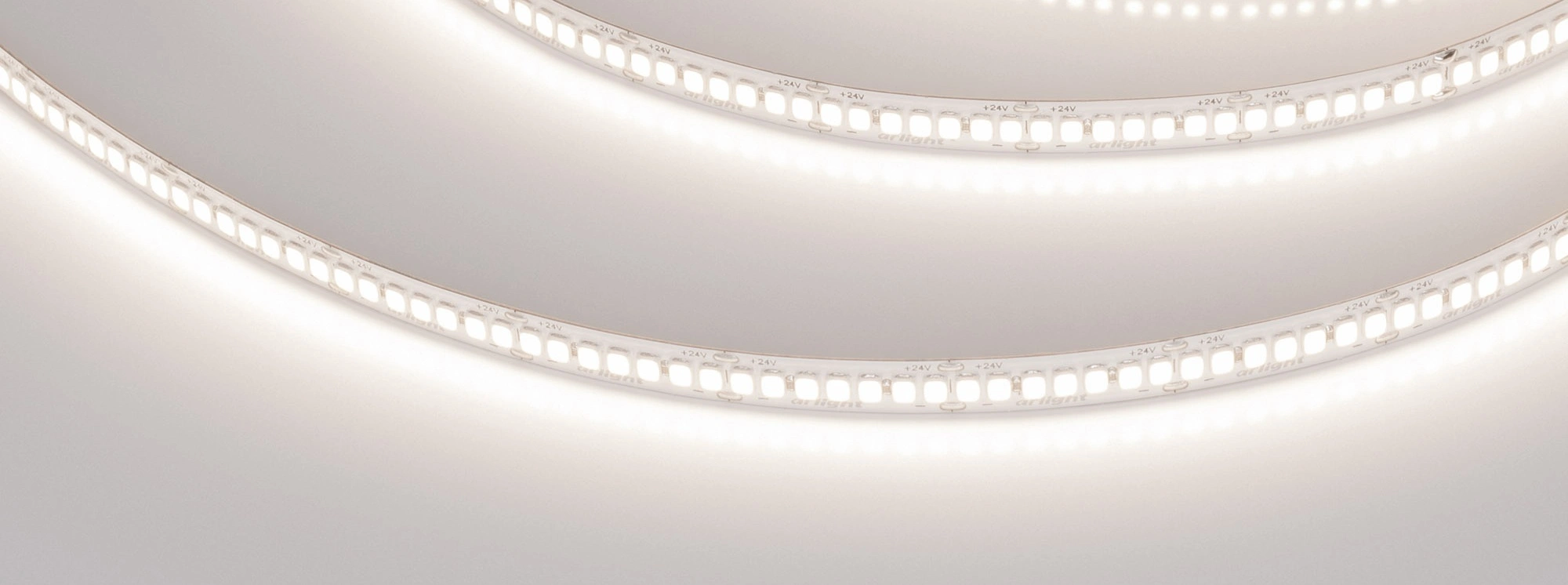 Светодиодная лента RT-A280, открытая IP20. Светодиоды 2835, 280 шт/м (1400 шт на 5м), белая плата, скотч 3M. Цвет ДНЕВНОЙ 4000K, цветопередача CRI>90 , угол 120°. Питание 24 В, мощность 10 Вт/м (50 Вт на 5 м). Размеры 5000x8x1.3мм. Мин.отрезок 25 мм, 7 светодиодов. Цена за 1м.
