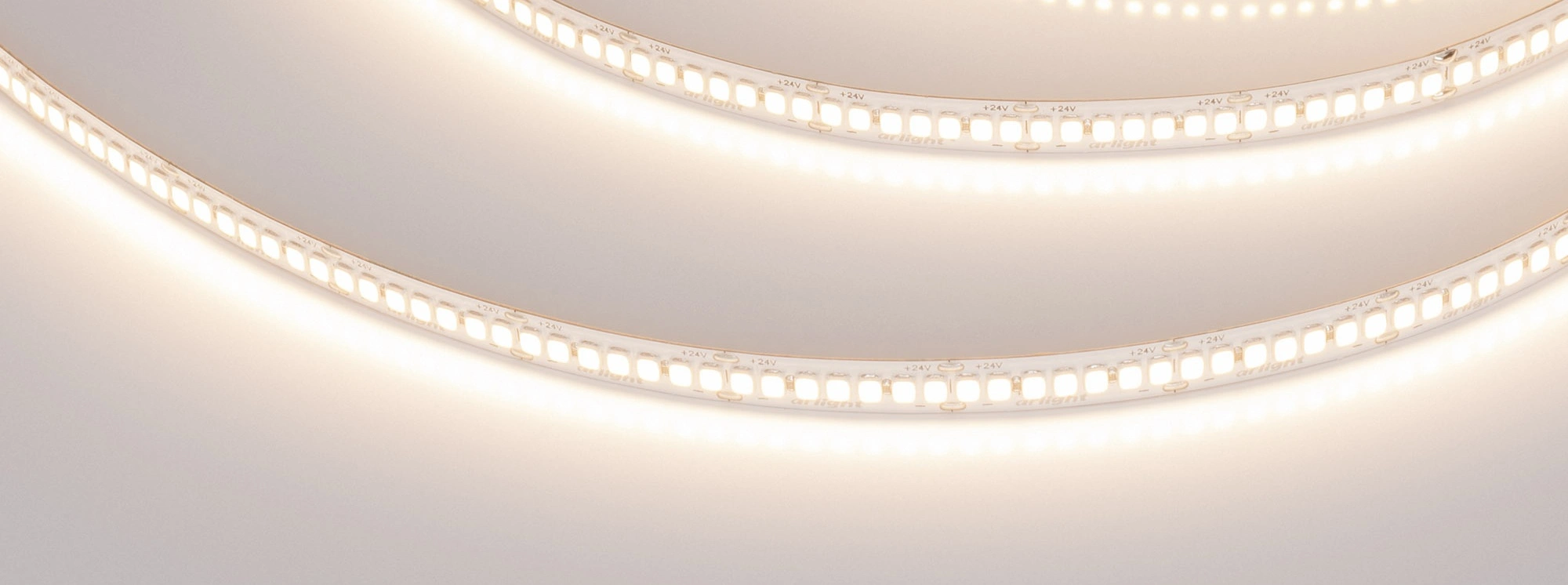 Светодиодная лента RT-A280, открытая IP20. Светодиоды 2835, 280 шт/м (1400 шт на 5м), белая плата, скотч 3M. Цвет ТЕПЛЫЙ 3000K, цветопередача CRI>90 , угол 120°. Питание 24 В, мощность 10 Вт/м (50 Вт на 5 м). Размеры 5000x8x1.3мм. Мин.отрезок 25 мм, 7 светодиодов. Цена за 1м.