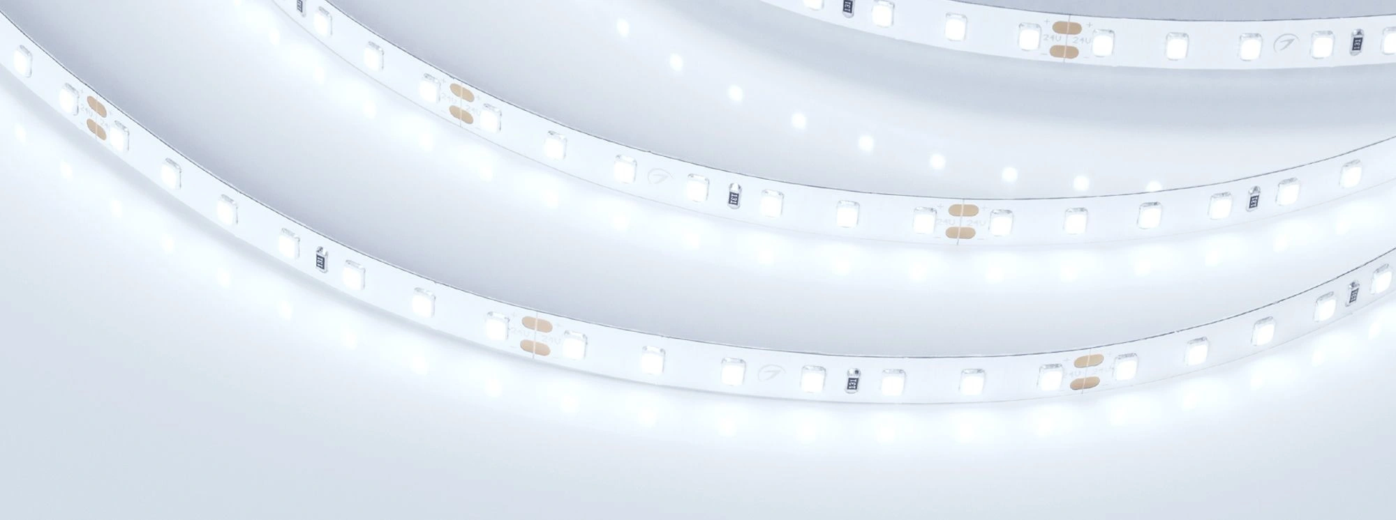 Светодиодная лента RT-A98, открытая. Светодиоды 2835, 98 шт/м (490 шт на 5 м), белая плата, ширина 8 мм, скотч 3M. Цвет ХОЛОДНЫЙ 8000 K, цветопередача CRI>85, угол 120°. Питание 24V, мощность 10 Вт/м (50 Вт на 5 м). Размеры 5000x8x1.5 мм. Мин. отрезок 71.43 мм, 7 светодиодов. Цена за 1 м.