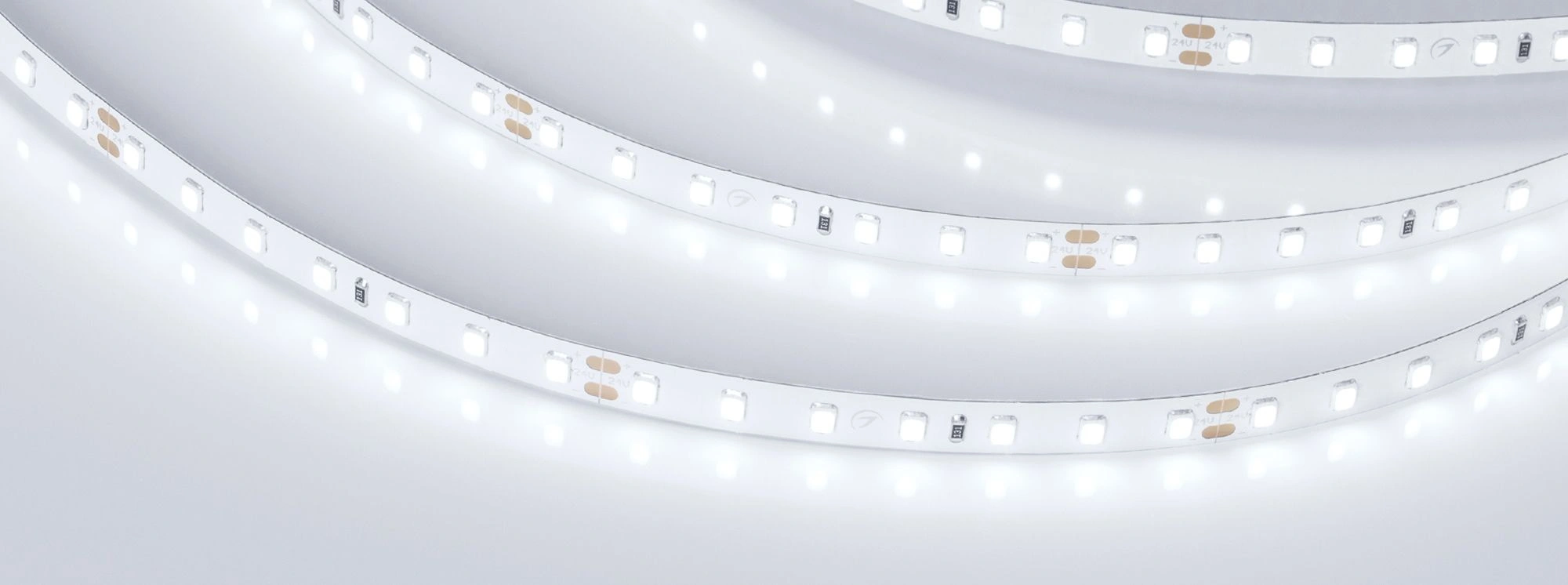 Открытая светодиодная лента шириной 8 мм и мощностью 10 Вт/м с индексом цветопередачи CRI>85. Светодиоды SMD 2835 (98 шт/м) белого цвета свечения (6000 К). Напряжение питания 24 В. Минимальный отрезок 71.43 мм (7 светодиодов). Высокая эффективность >125 лм/Вт. Лента применяется для декоративной подсветки интерьеров, потолочных ниш, рабочих зон кухни, мебели, а также подходит для подсветки рекламных конструкций и витрин.