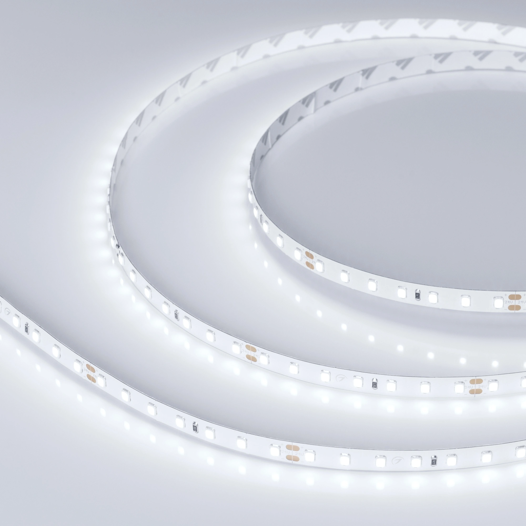 Светодиодная лента RT-A98, открытая. Светодиоды 2835, 98 шт/м (490 шт на 5 м), белая плата, ширина 8 мм, скотч 3M. Цвет БЕЛЫЙ 6000 K, цветопередача CRI>85, угол 120°. Питание 24V, мощность 10 Вт/м (50 Вт на 5 м). Размеры 5000x8x1.5 мм. Мин. отрезок 71.43 мм, 7 светодиодов. Цена за 1 м.