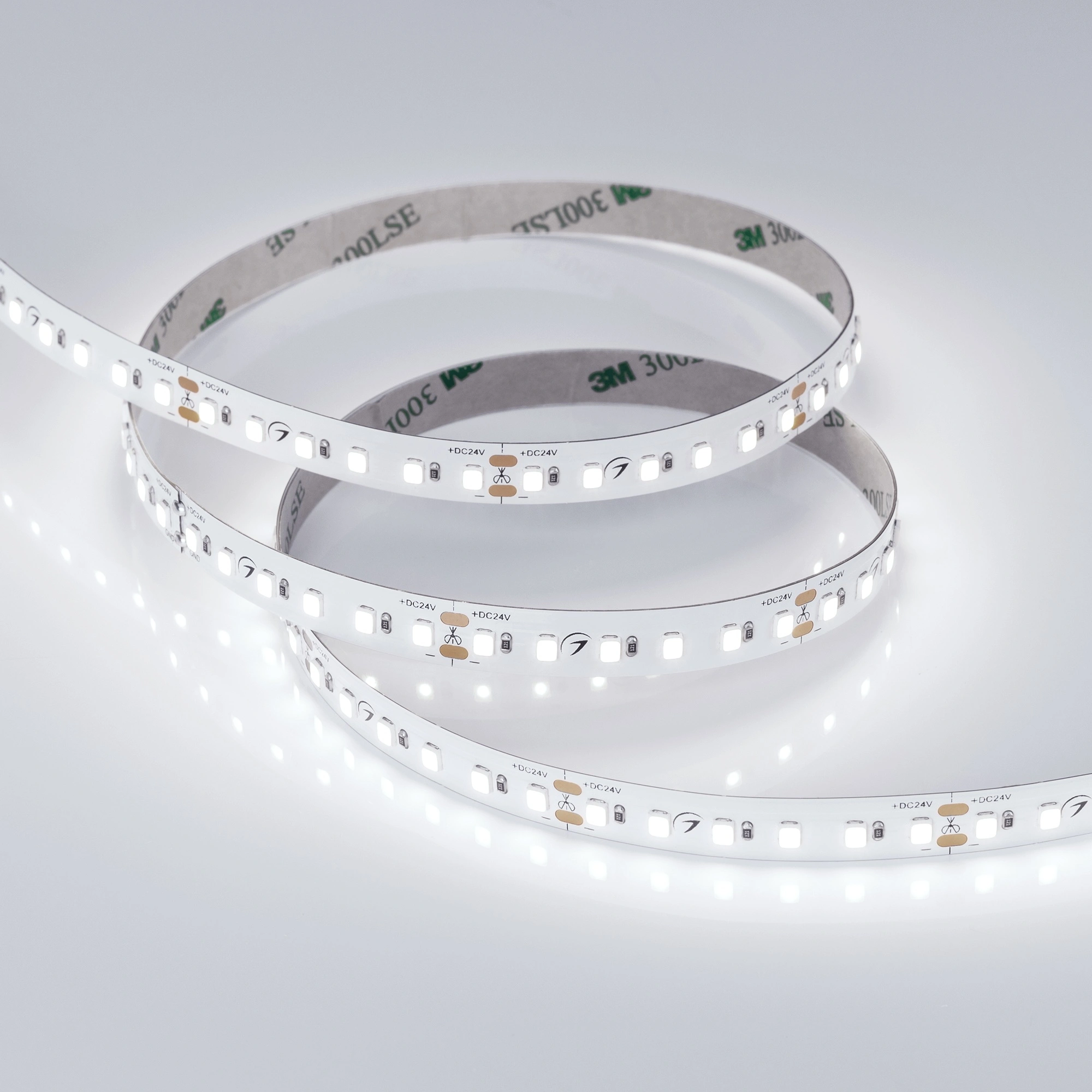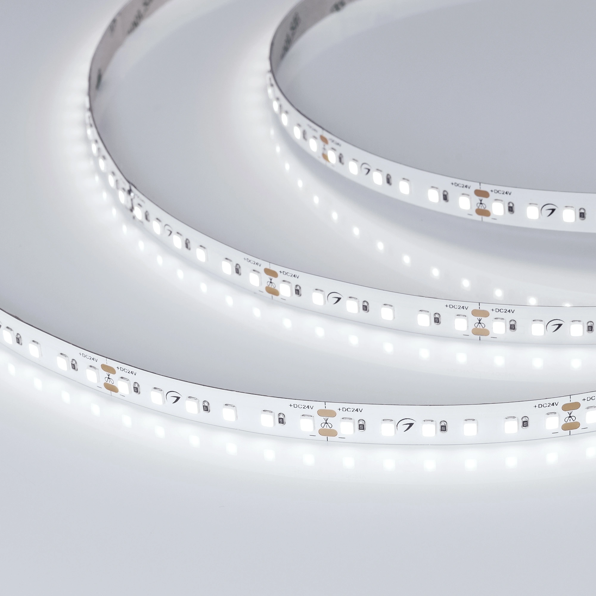Светодиодная лента повышенной прочности с высоким индексом цветопередачи CRI>90. Ширина 10 мм, мощность 10 Вт/м. Светодиоды SMD 2835 (120 шт/м) белого цвета свечения (5800–6500 К). Напряжение питания 24 В. Минимальный отрезок 50 мм (6 светодиодов). Предназначена для декоративной подсветки интерьеров, оформления рекламы, витрин. Благодаря использованию печатной платы высокой механической прочности допустимо перекручивание ленты для удобства монтажа на поверхностях с различными углами изгибов.