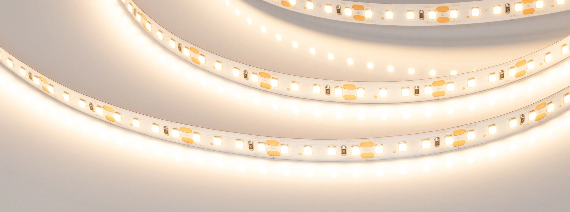 Светодиодная лента серии A120, светодиод SMD 2835, 120 светодиодов на метр. Длина ленты 30м с подключением с одной стороны, без стабилизаторов. Лента применяется для декоративной подсветки интерьеров, потолочных ниш, рабочих зон кухни, мебели, а также подходит для подсветки рекламных конструкций и витрин.
